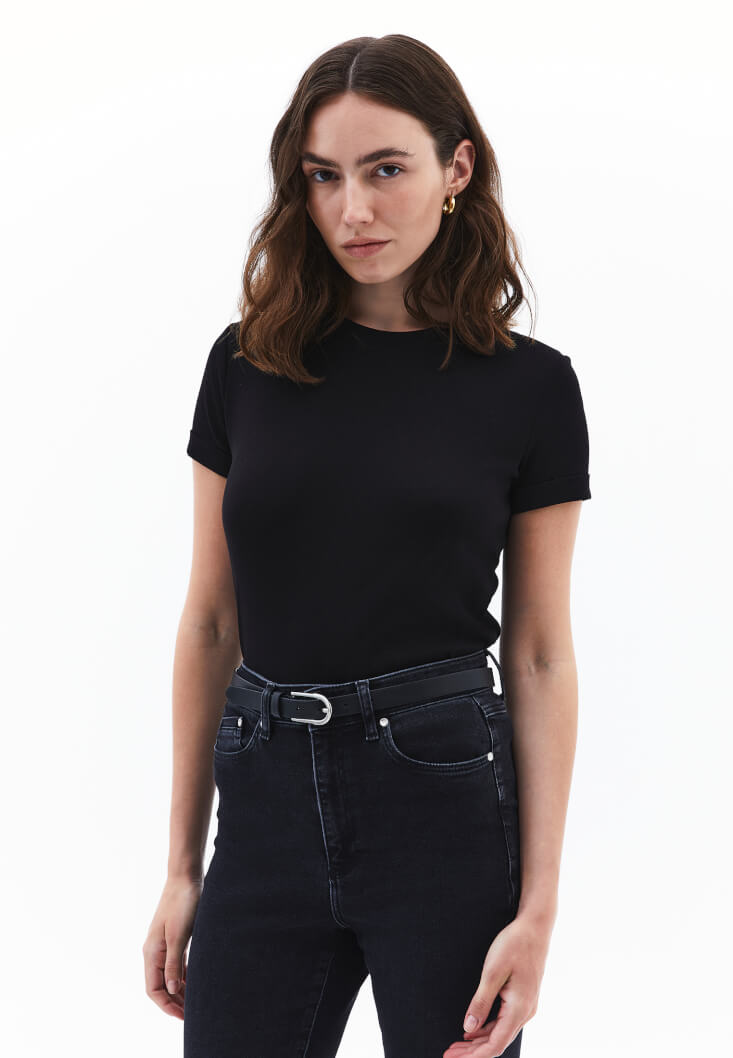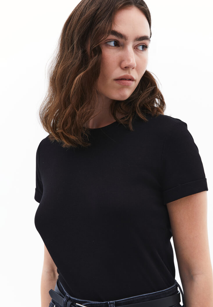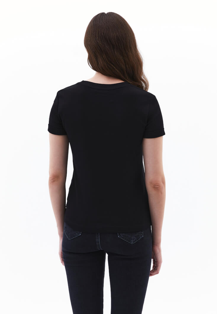 • Bayan Siyah Pamuklu Sıfır Yaka Tişört