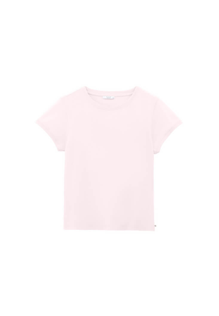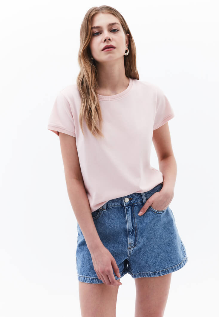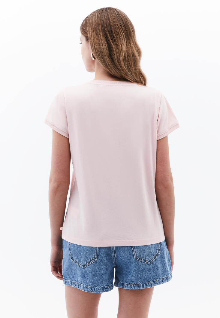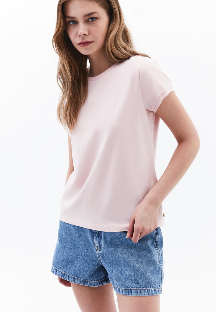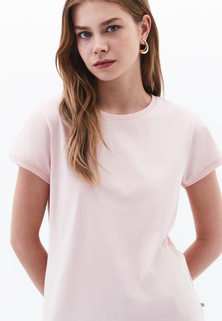 • Bayan Pembe Pamuklu Sıfır Yaka Tişört
