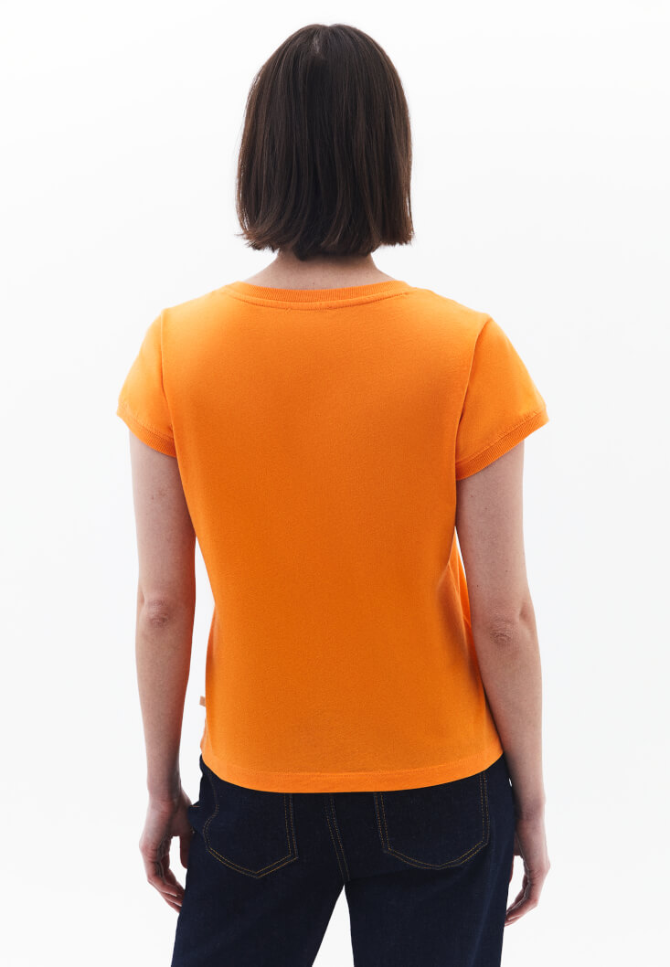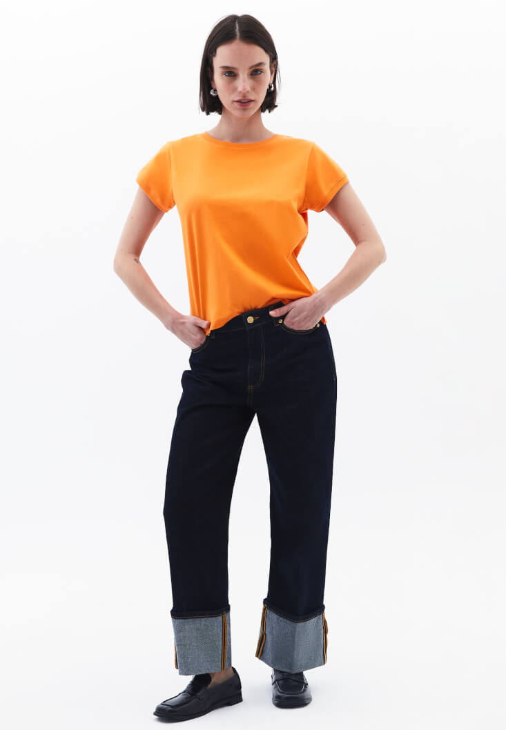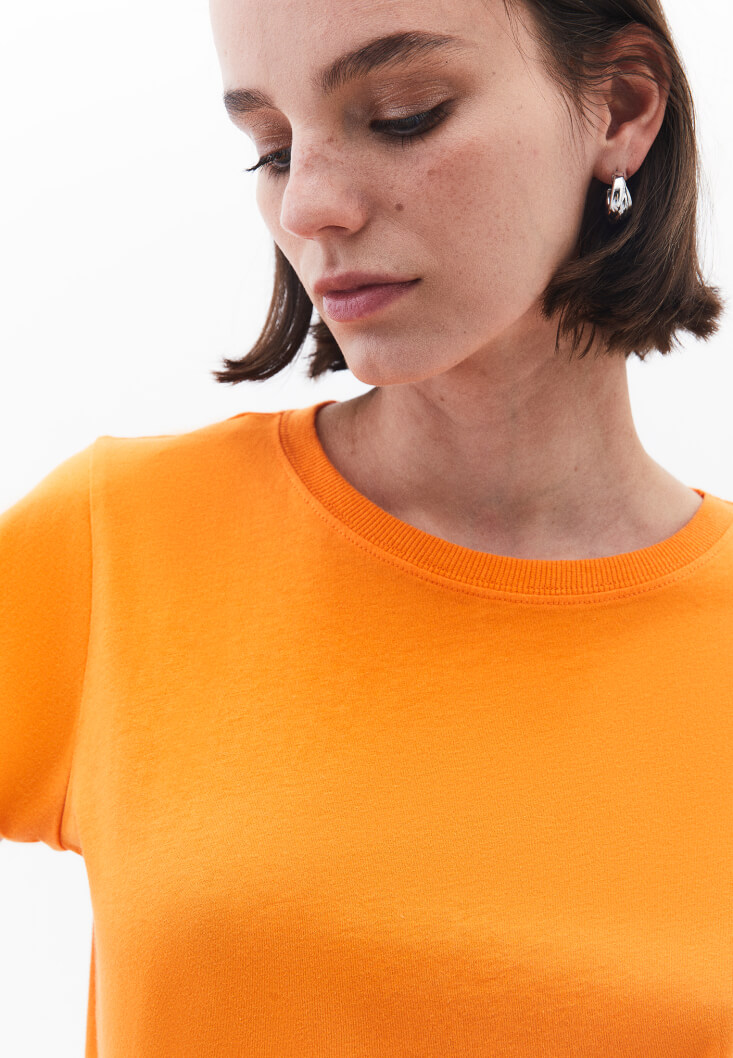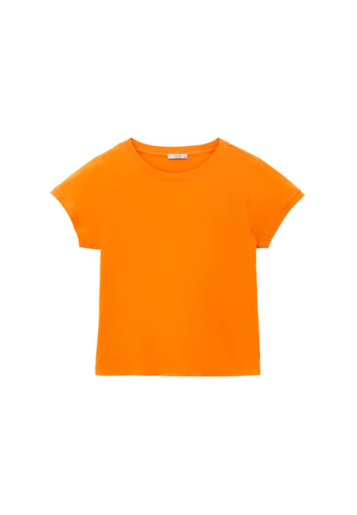 • Bayan Turuncu Pamuklu Sıfır Yaka Tişört