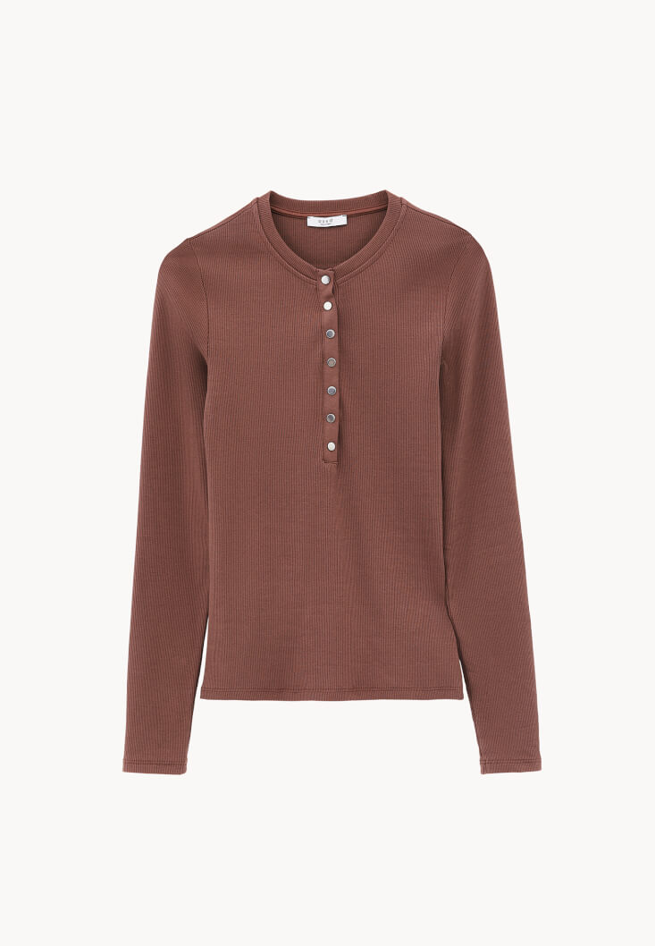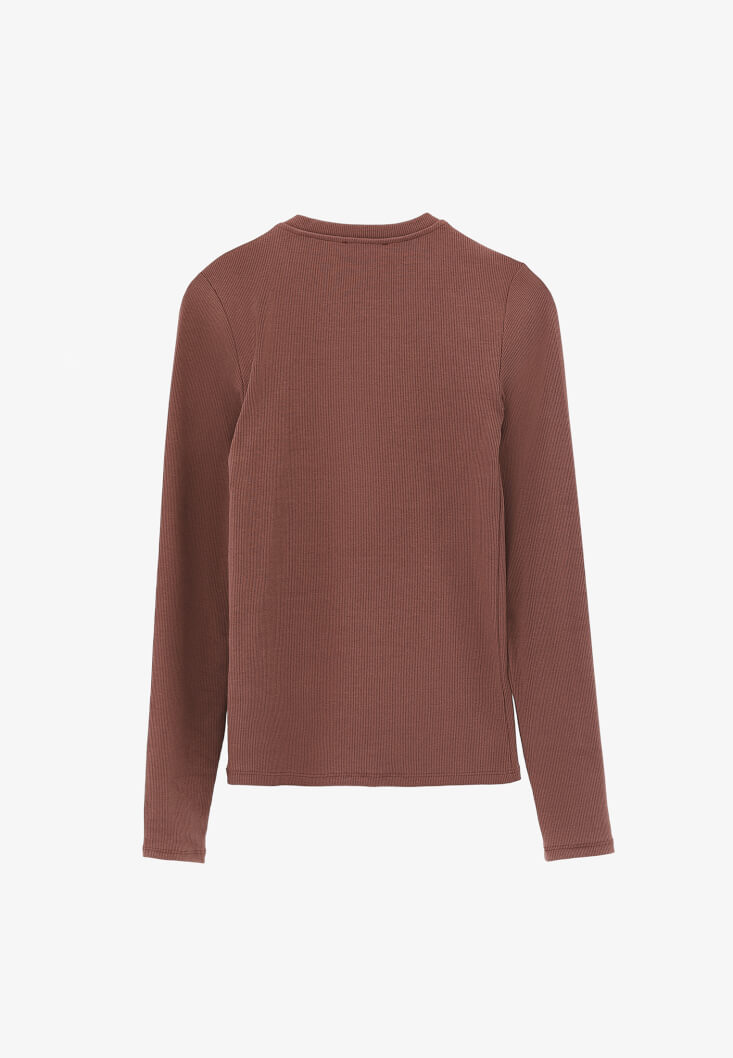 • Bayan Kahverengi Pamuklu Sıfır Yaka Tişört
