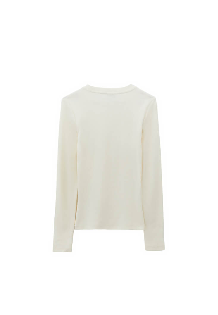 • Bayan Krem Pamuklu Sıfır Yaka Tişört
