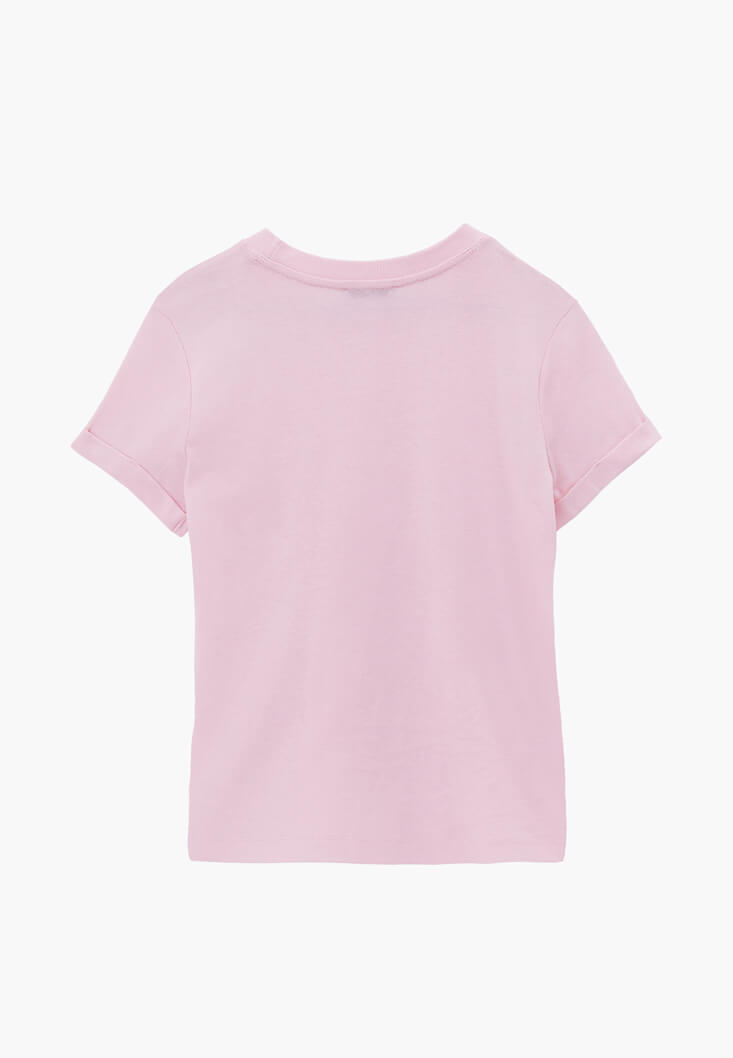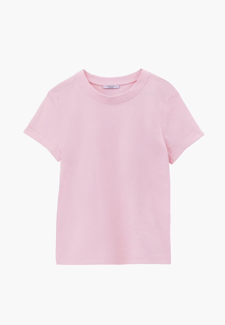 Pembe Pamuklu Sıfır Yaka Tişört