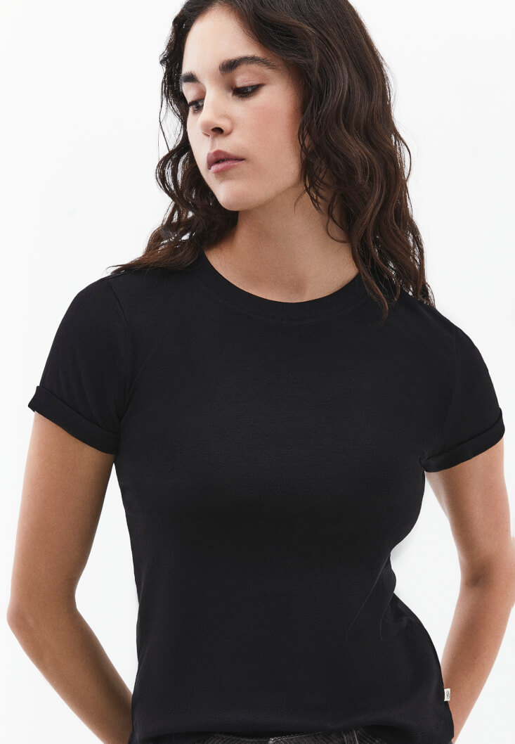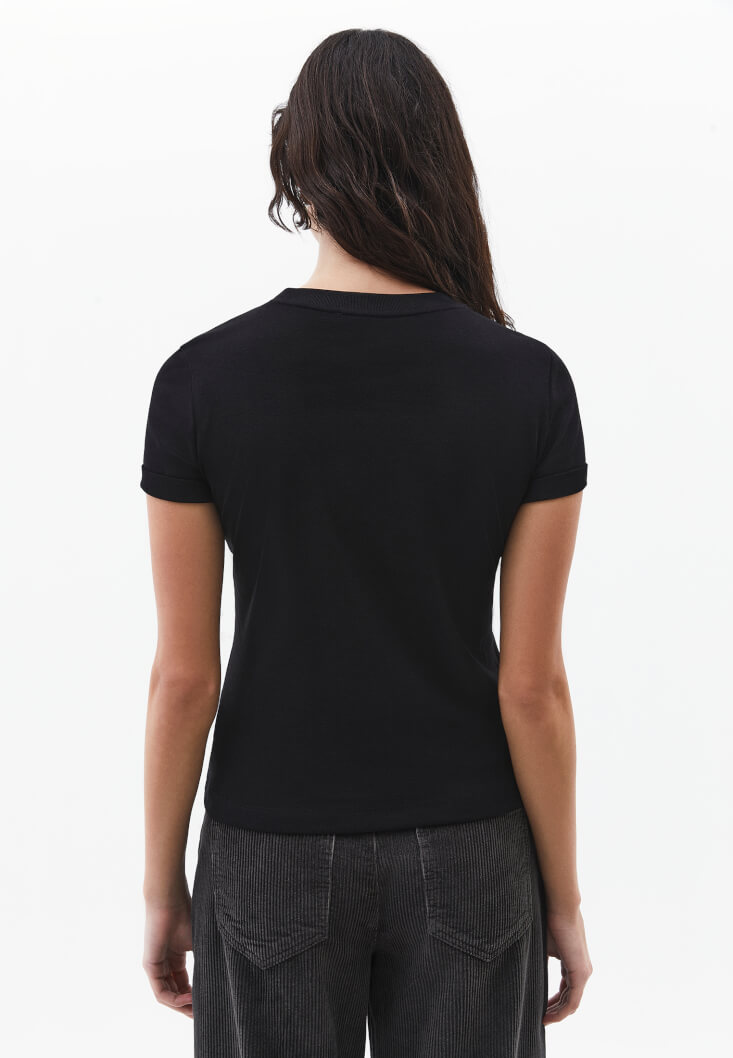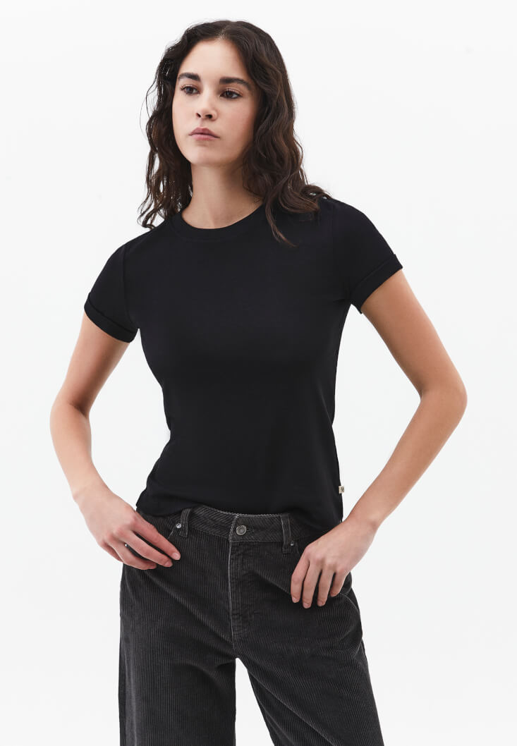 • Bayan Siyah Pamuklu Sıfır Yaka Tişört