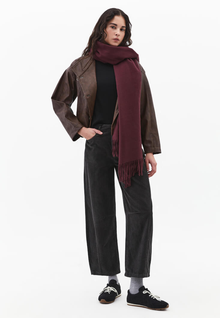 Bu tişörtü, Kemer Detaylı Oversize Ceket içerisine giyerek maskülen bir ofis stili yaratabilir ya da Ultra Yüksek Bel Wide Leg Pantolon ile birleştirerek minimalist bir şehir görünümü elde edebilirsiniz. Daha hareketli bir alt parça olan Pileli Mini Etek ile eşleştirerek sade ve dengeli bir silüet oluşturun. Doğal dokusu sayesinde her mevsim, her katmanlamada size eşlik edecek kadar çok yönlüdür.
