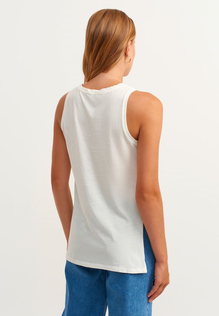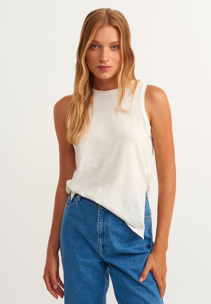 Krem Pamuklu Sıfır Yaka Yırtmaçlı Atlet