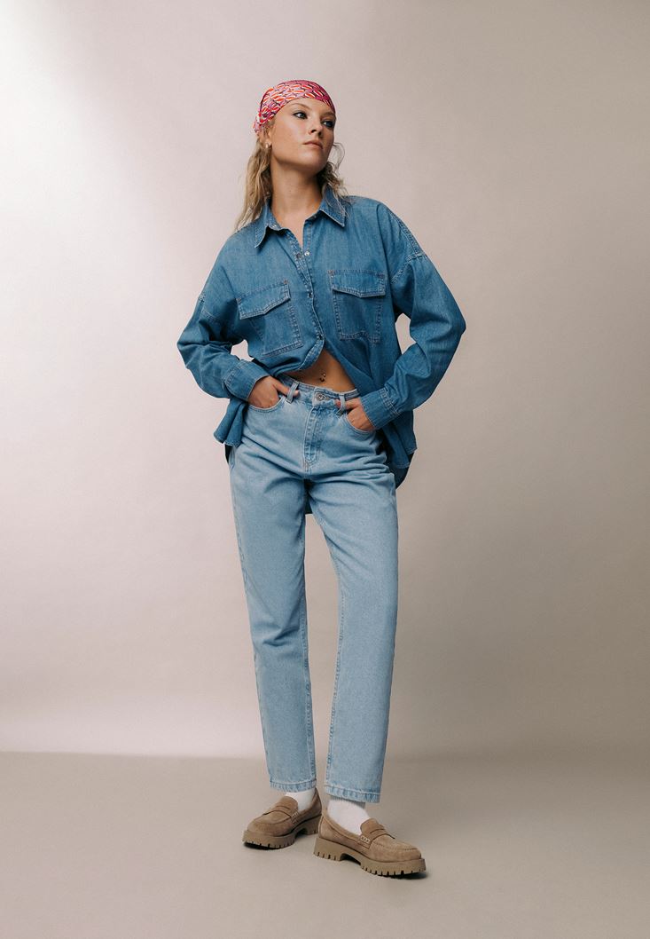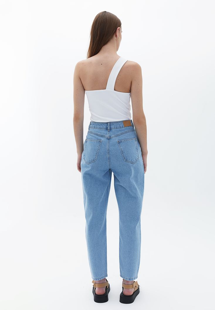 Mom-Fit Pantolon ve Tek Omuz Atlet Kombini