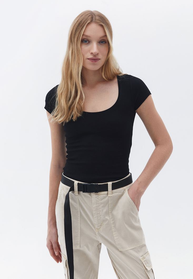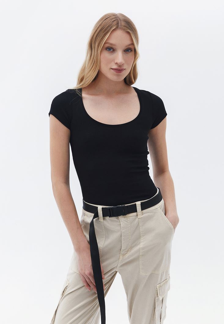Pamuklu Tişört ve Kemerli Pantolon Kombini