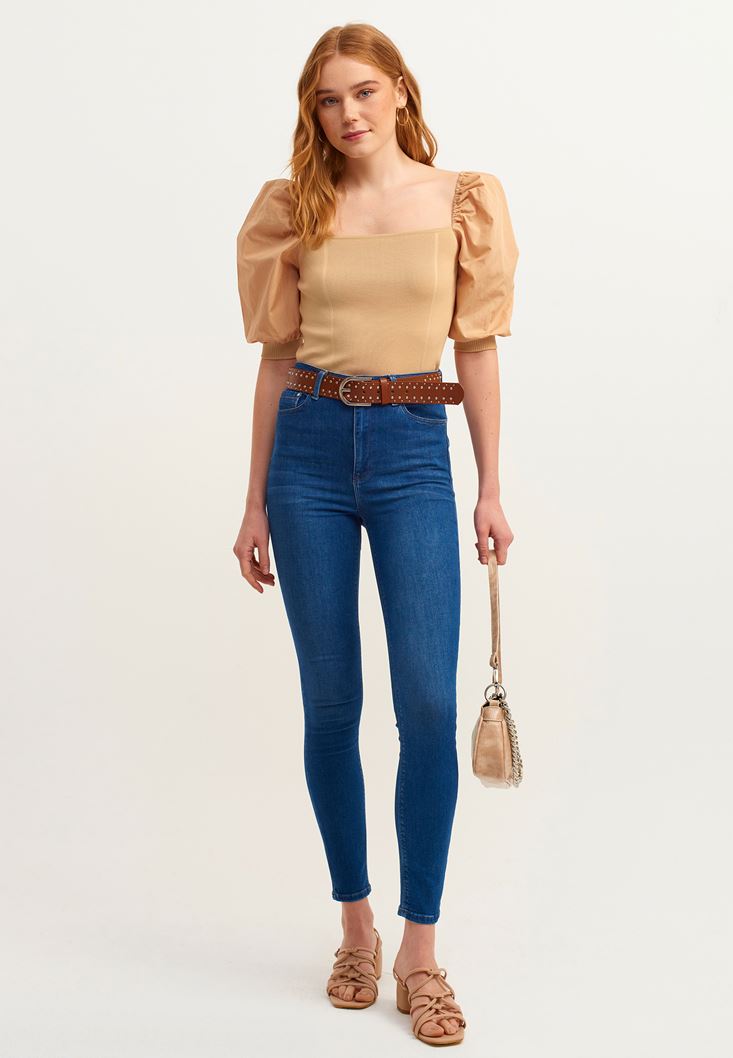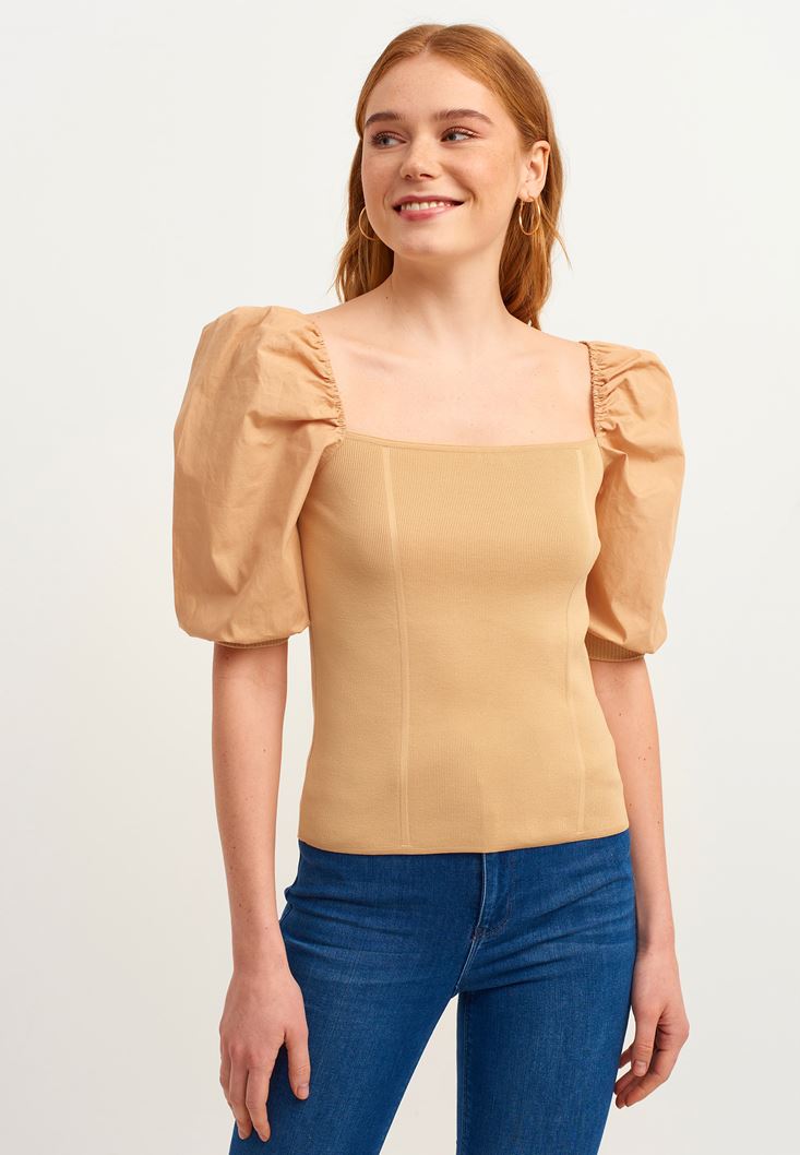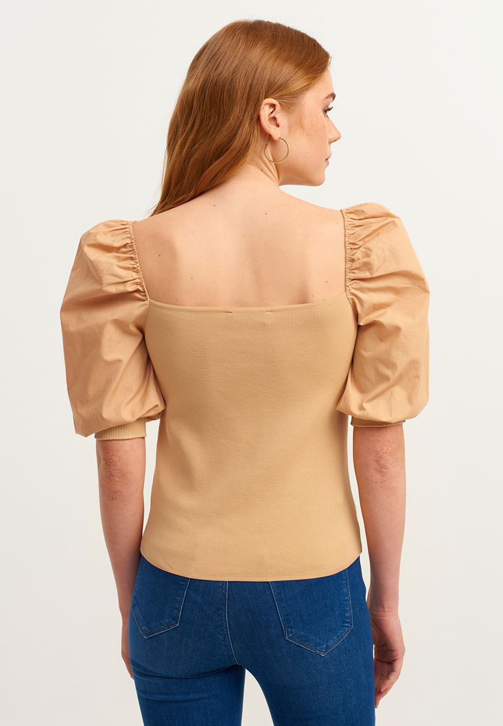 Balon Kollu Romantik Triko ve Pantolon Kombini