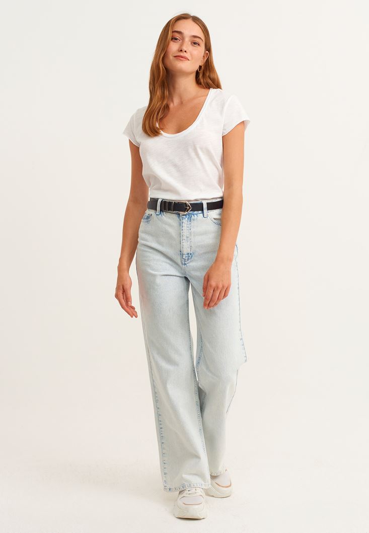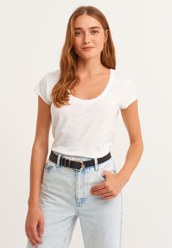 • Bayan Beyaz Pamuklu U-Neck Tişört