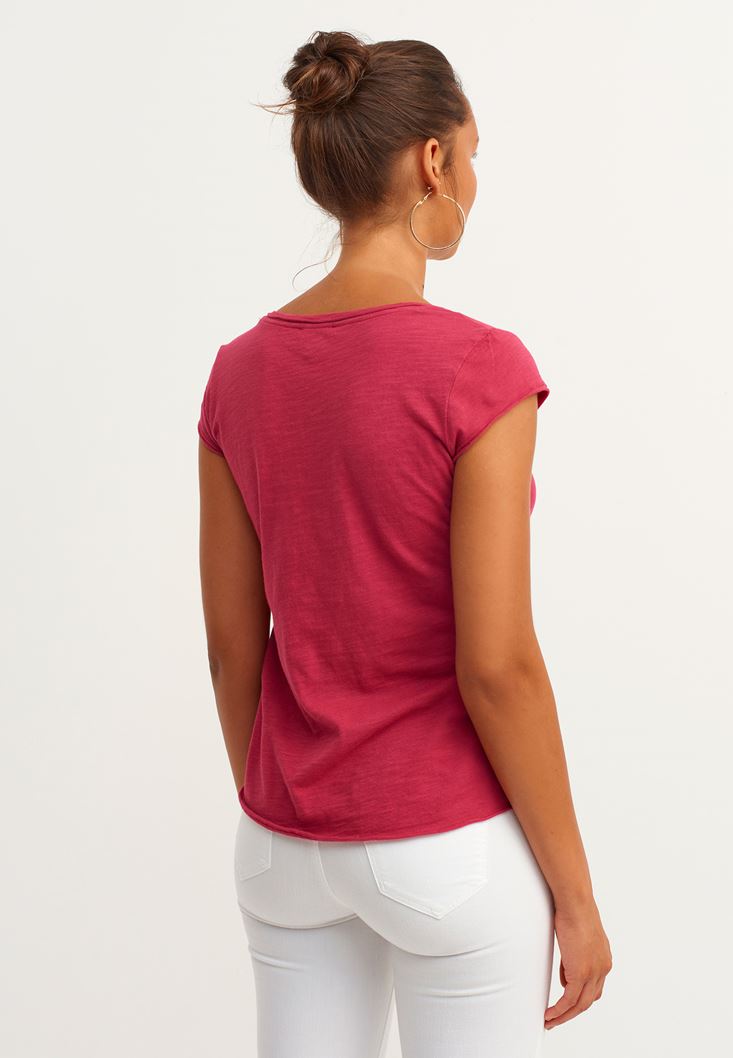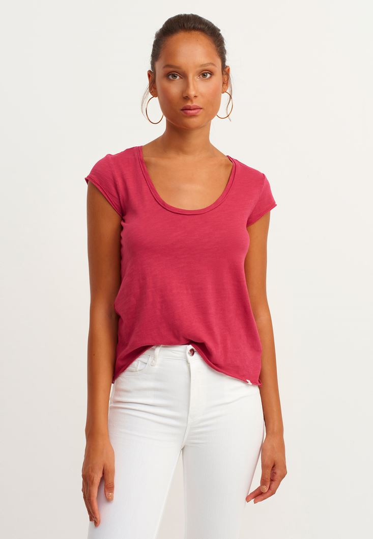 • Bayan Pembe Pamuklu U-Neck Tişört