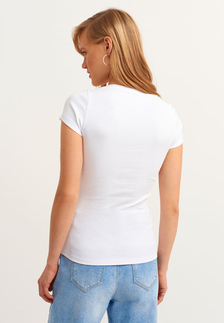 • Bayan Beyaz Pamuklu U-Neck Tişört