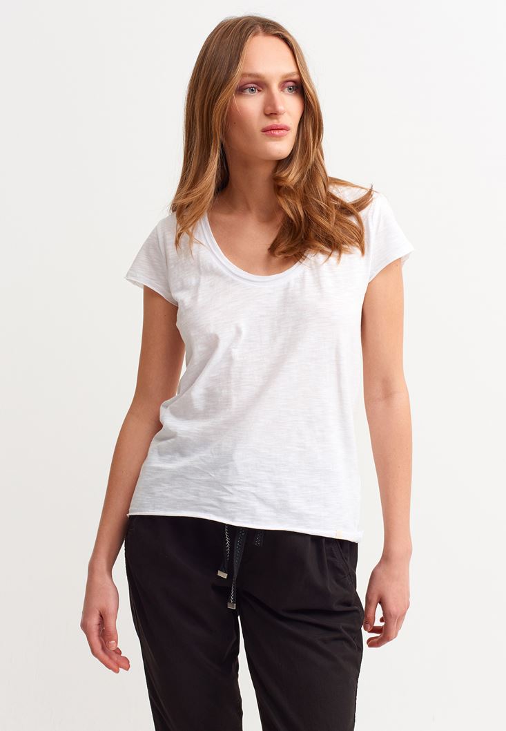 • Bayan Beyaz Pamuklu U-Neck Tişört