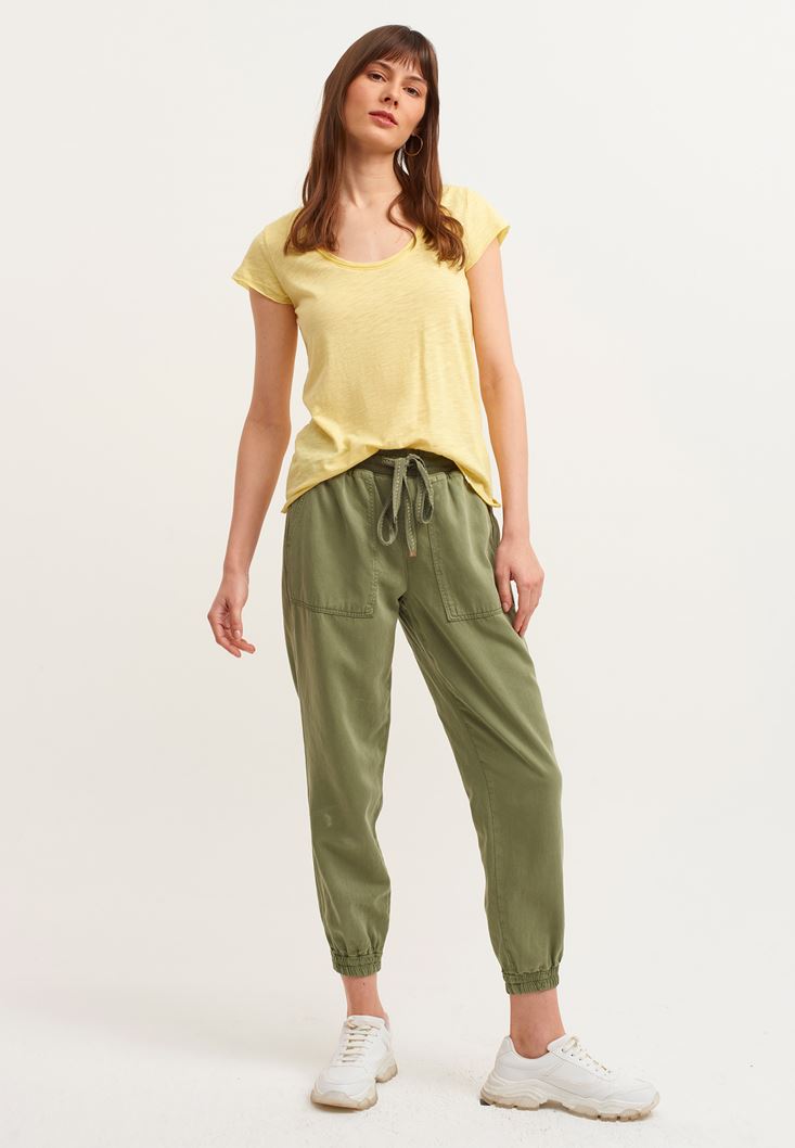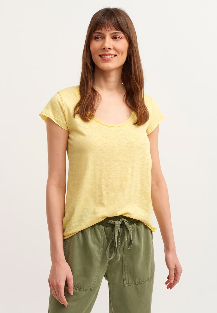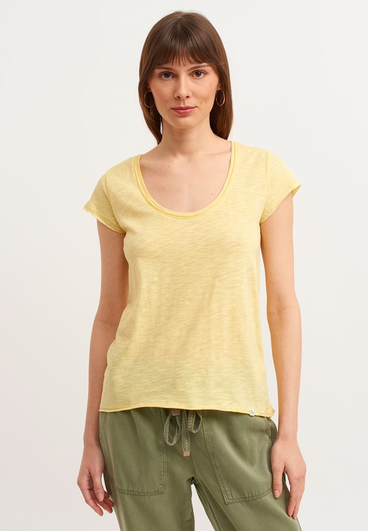 • Bayan Sarı Pamuklu U-Neck Tişört
