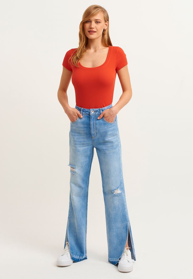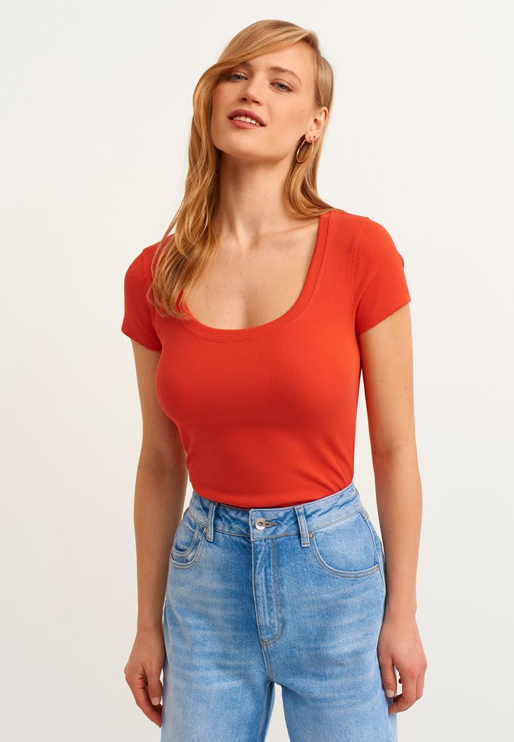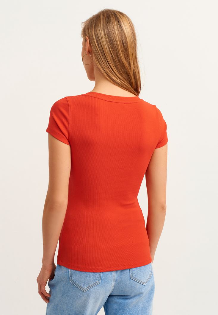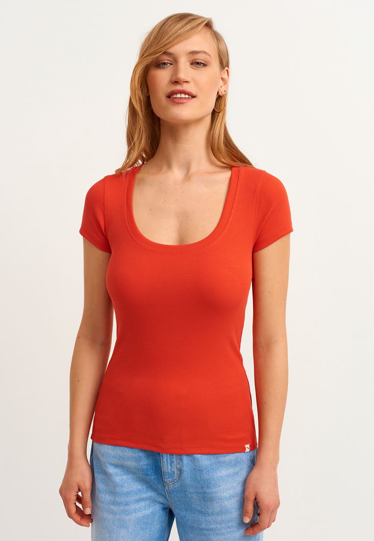 Kiremit Pamuklu U-Neck Tişört