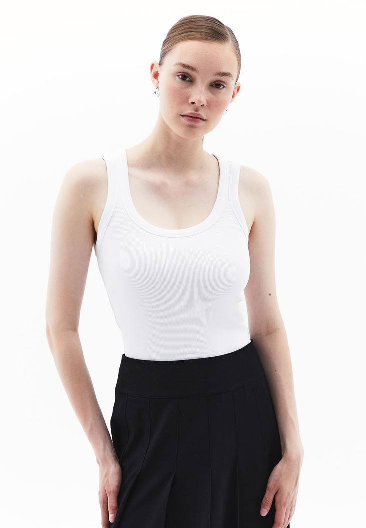 • Bayan Beyaz Pamuklu U Yaka Atlet