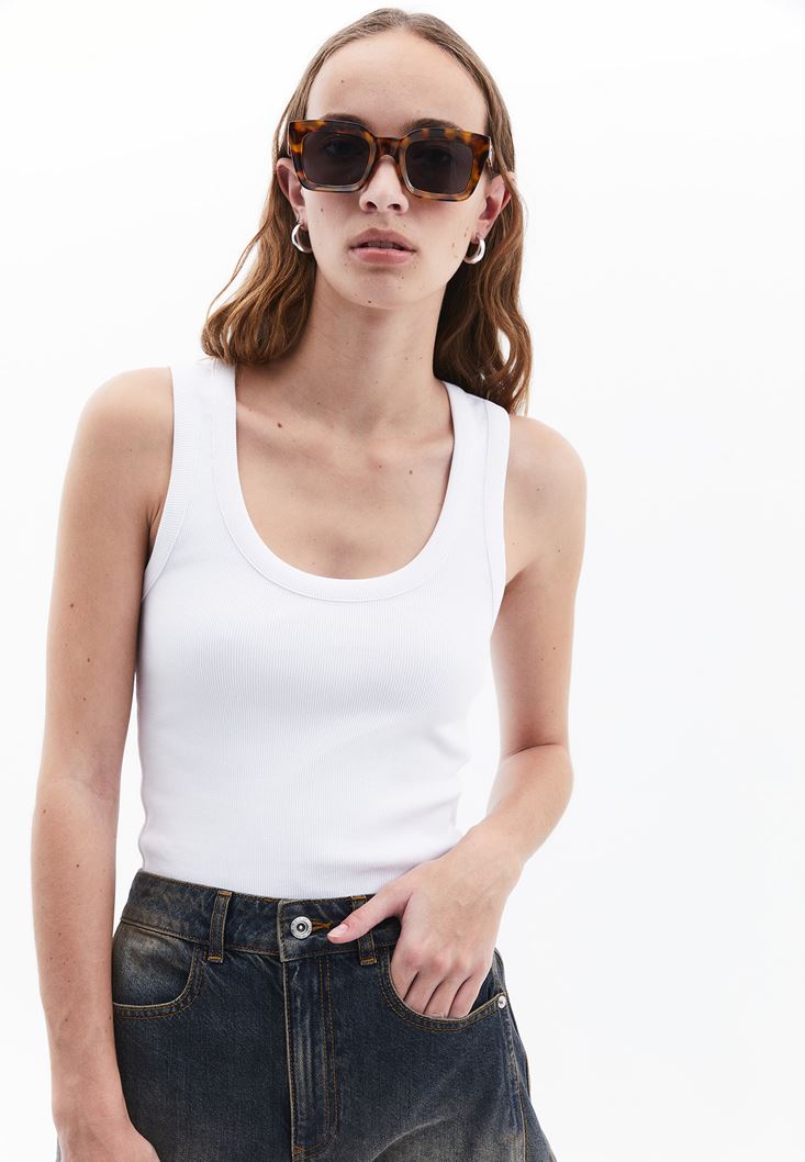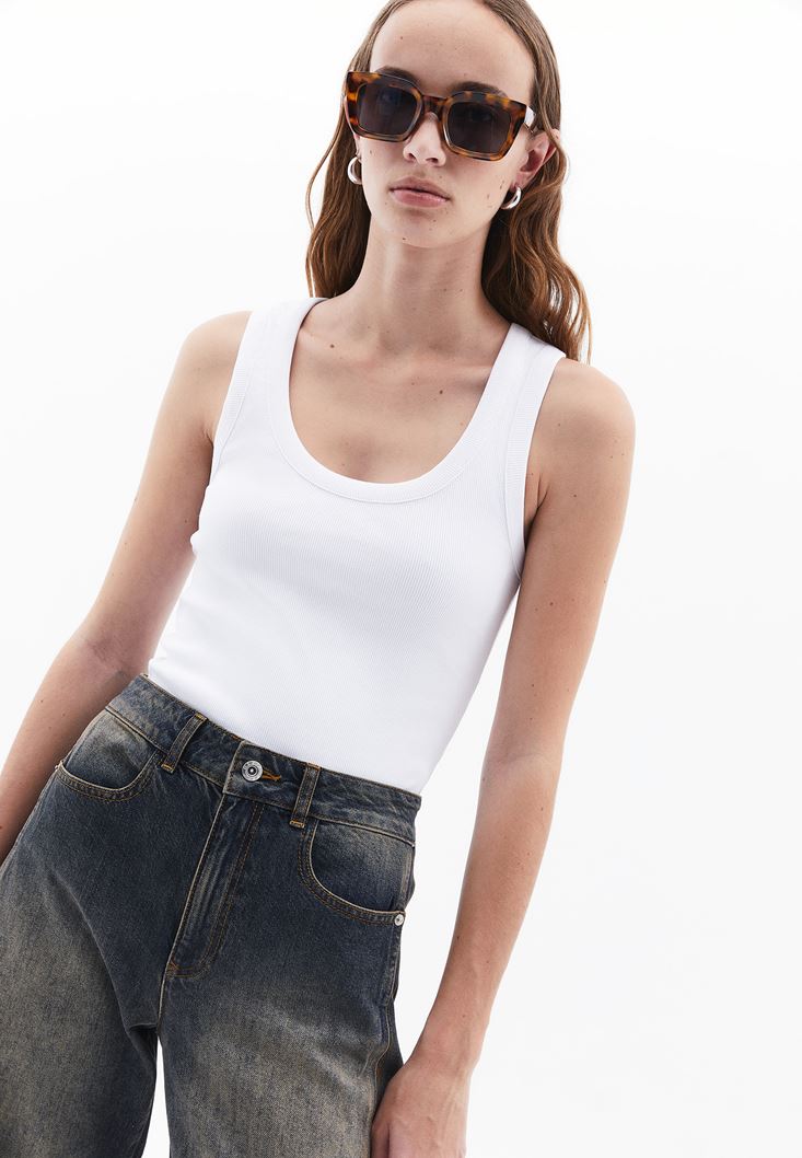 Beyaz Pamuklu U Yaka Atlet