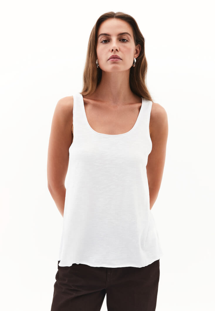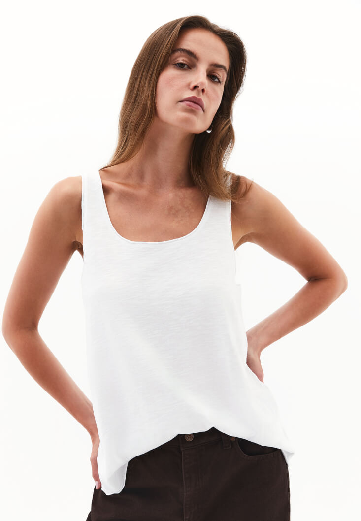 %100 pamuk içerikli, nefes alabilen doğal kumaş, bedenden uzak loose fit, kalın askılı, U yaka.