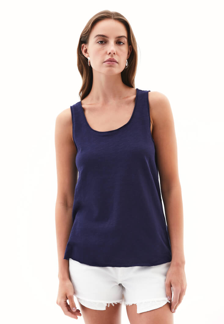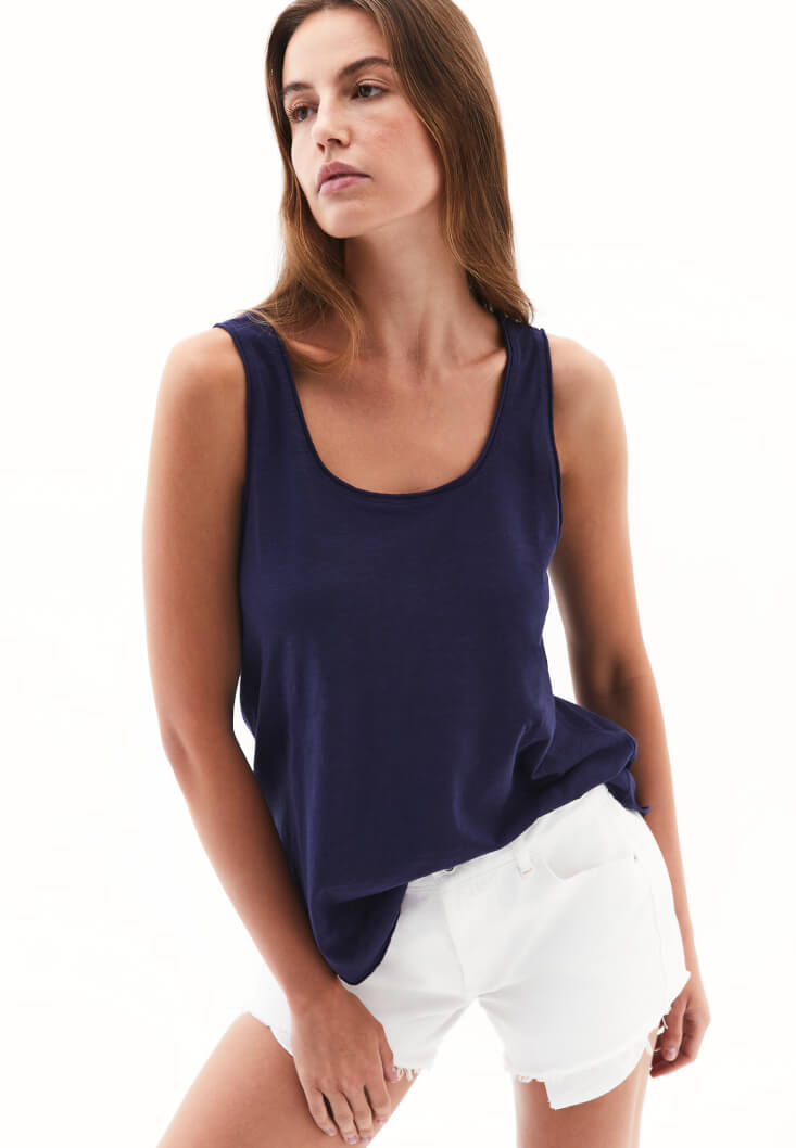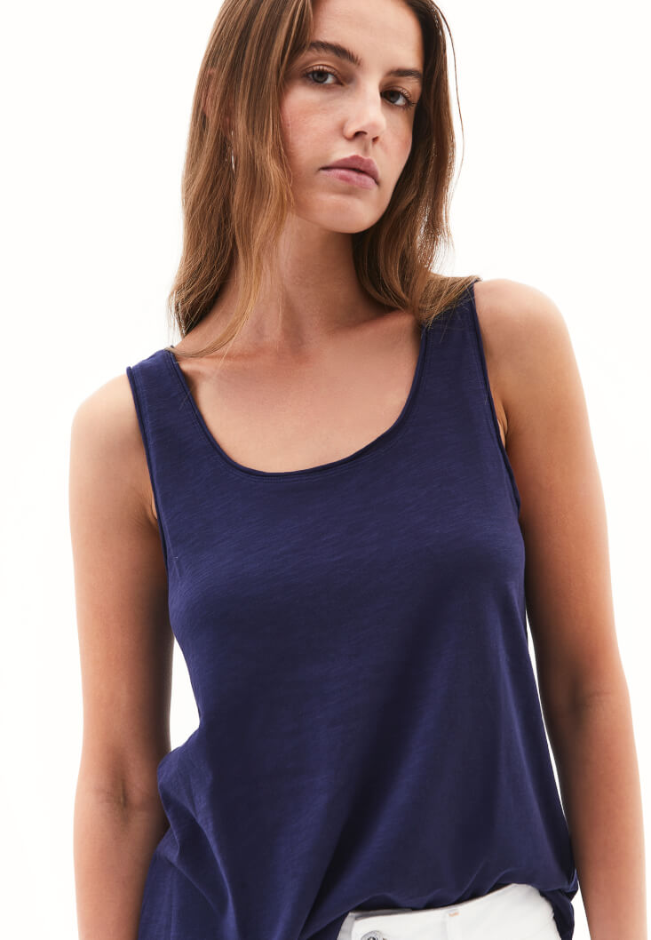 %100 pamuk içerikli, nefes alabilen doğal kumaş, bedenden uzak loose fit, kalın askılı, U yaka.