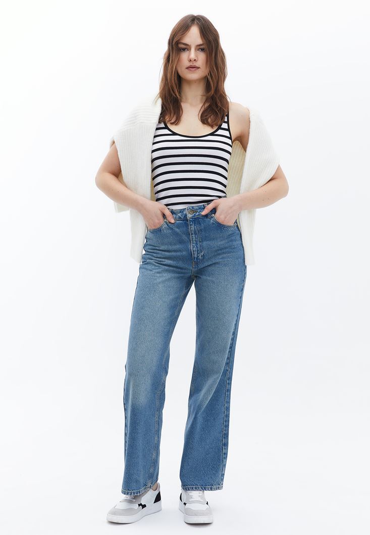• Bayan Beyaz/Siyah Pamuklu U Yaka Atlet