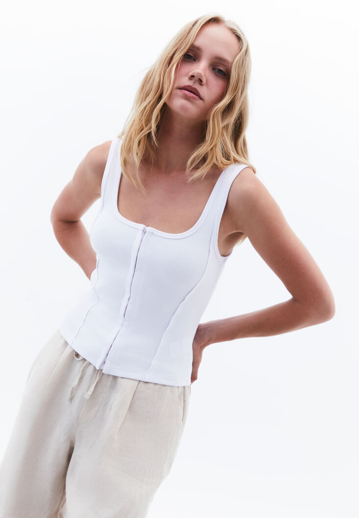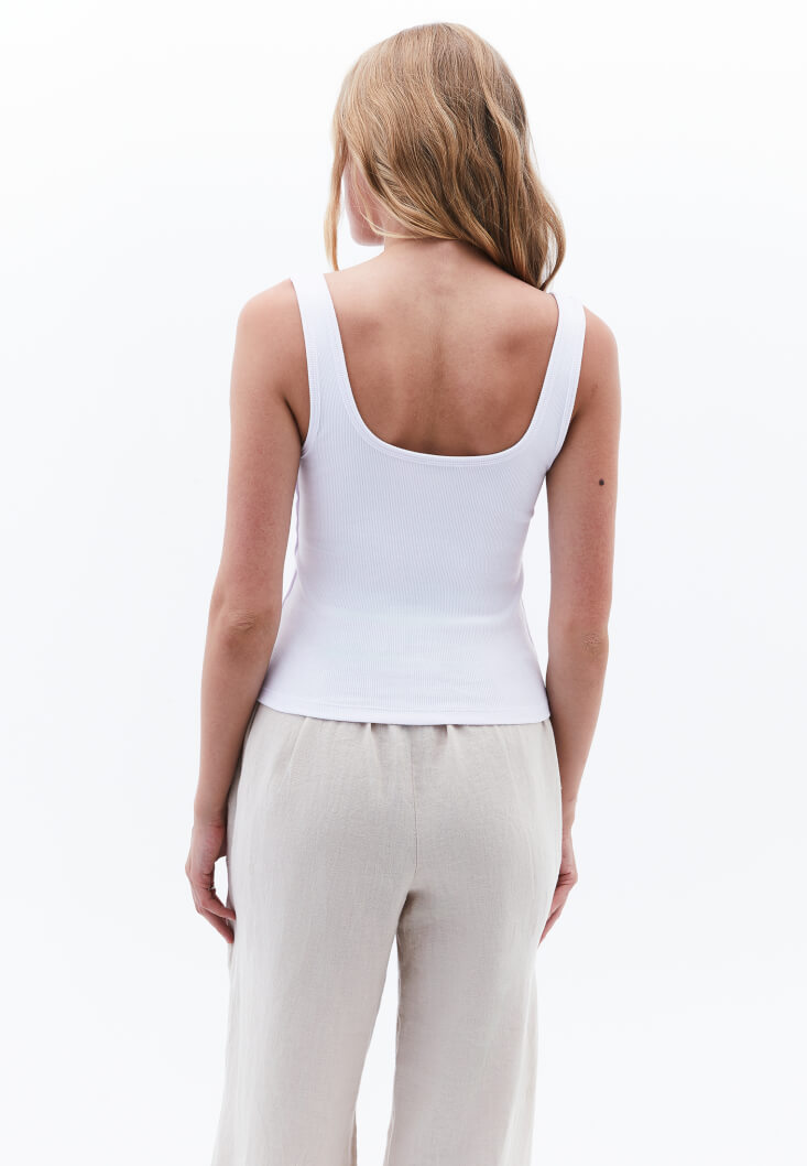 U yaka atlet modeli; vücuda yakın kesimiyle hem gün boyu rahatlık sunar hem de minimal şıklığı temsil eder. Kalın askılı ve genel hatlarıyla sade formuyla, her kombin içinde güvenle yerini alacak temel bir parça olduğu kadar, tek başına da sade bir stil ifadesi olur.