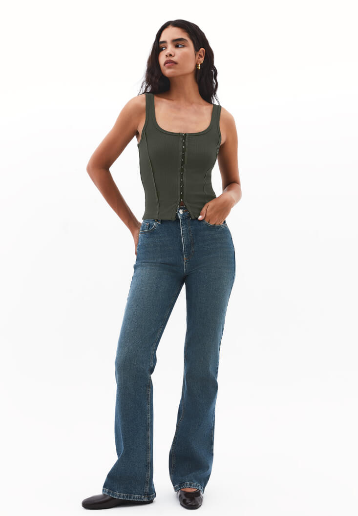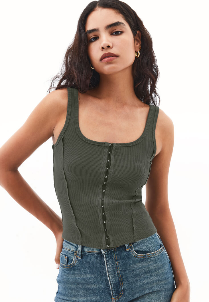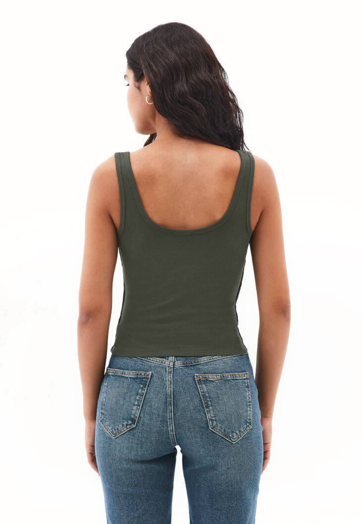 U yaka atlet modeli; vücuda yakın kesimiyle hem gün boyu rahatlık sunar hem de minimal şıklığı temsil eder. Kalın askılı ve genel hatlarıyla sade formuyla, her kombin içinde güvenle yerini alacak temel bir parça olduğu kadar, tek başına da sade bir stil ifadesi olur.