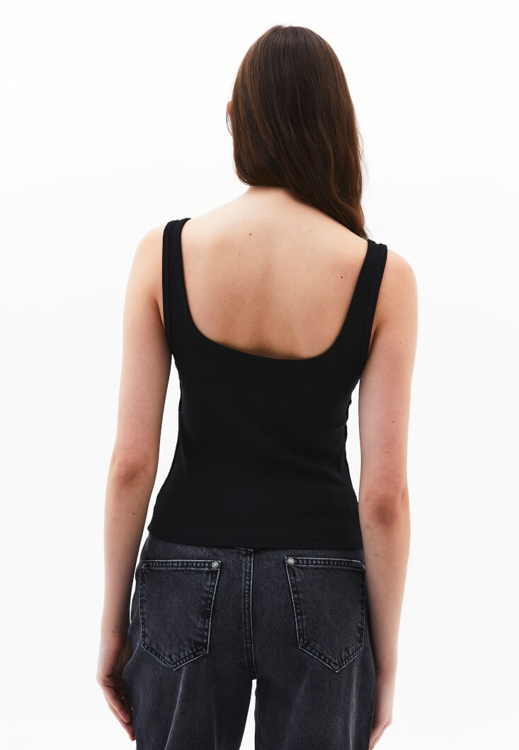 U yaka atlet modeli; vücuda yakın kesimiyle hem gün boyu rahatlık sunar hem de minimal şıklığı temsil eder. Kalın askılı ve genel hatlarıyla sade formuyla, her kombin içinde güvenle yerini alacak temel bir parça olduğu kadar, tek başına da sade bir stil ifadesi olur.