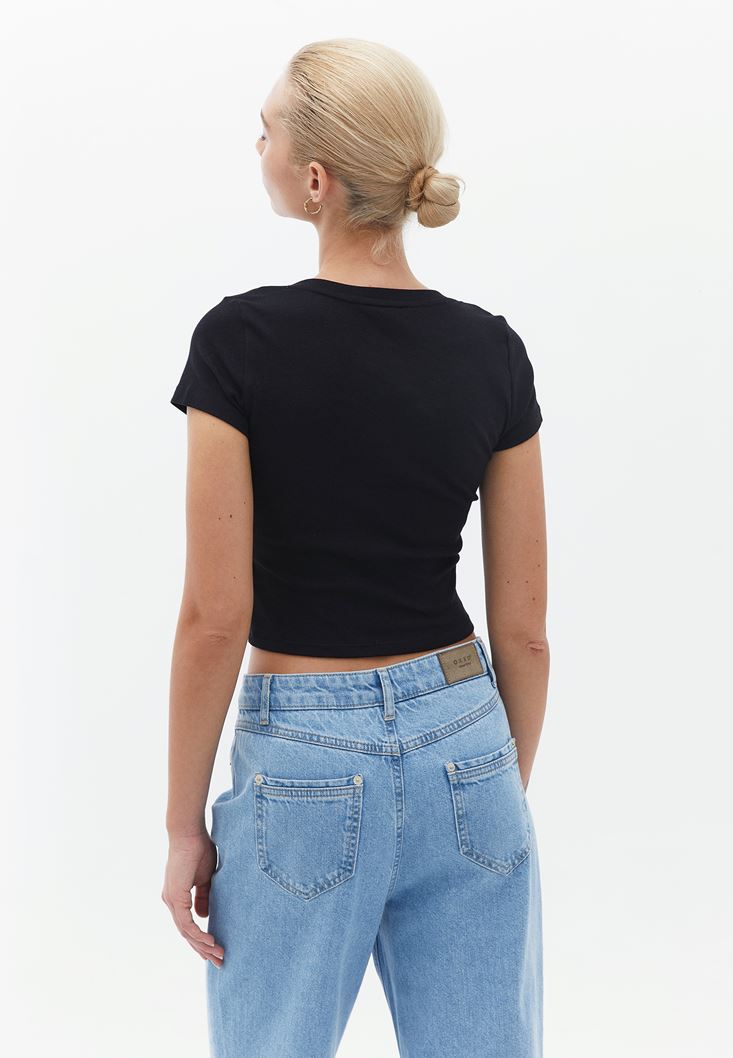 Siyah Pamuklu U Yaka Tişört