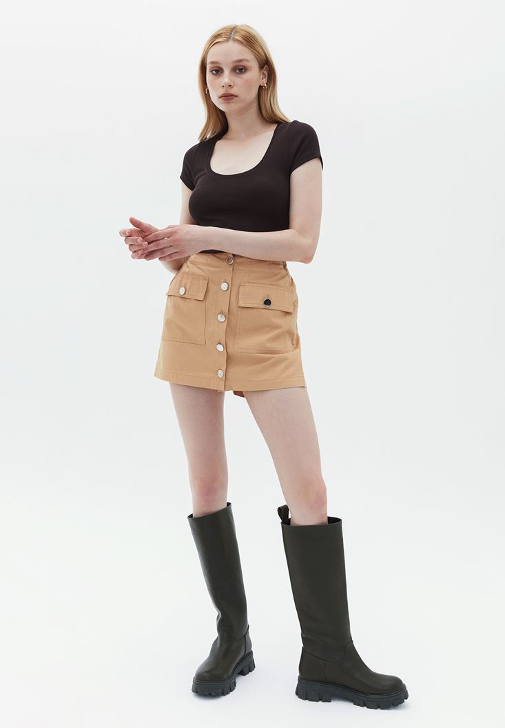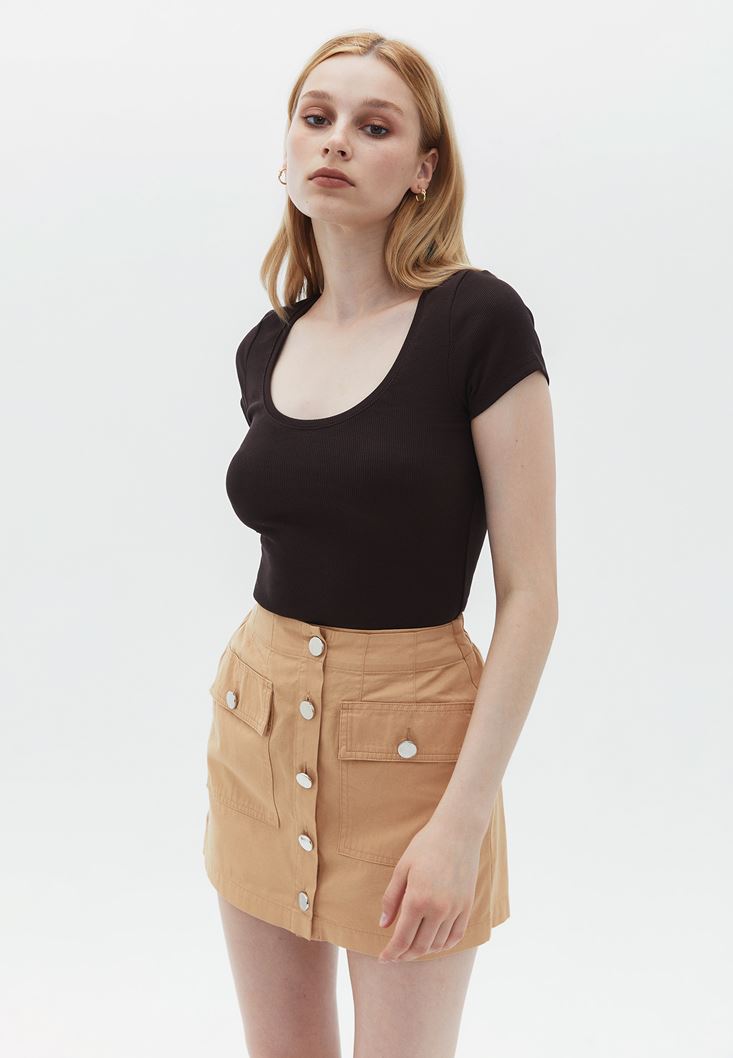 Fit: Bodycon  / Yaka: U-Neck / Kol: Short Sleeve