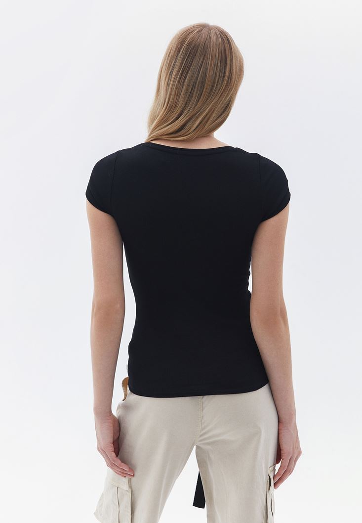 • Bayan Siyah Pamuklu U Yaka Tişört