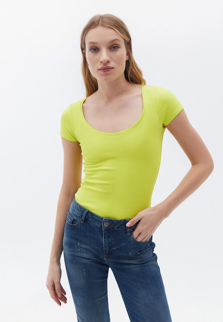 • Bayan Yeşil Pamuklu U Yaka Tişört