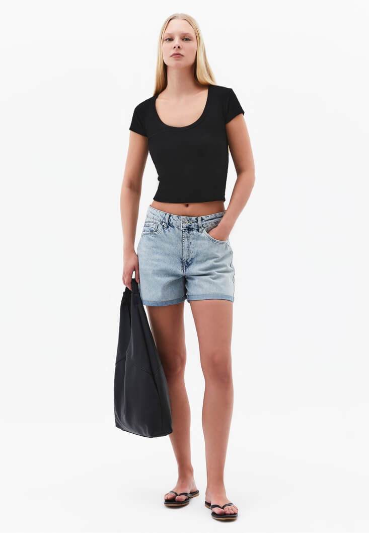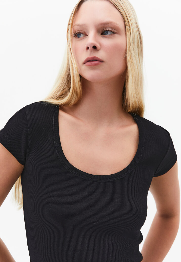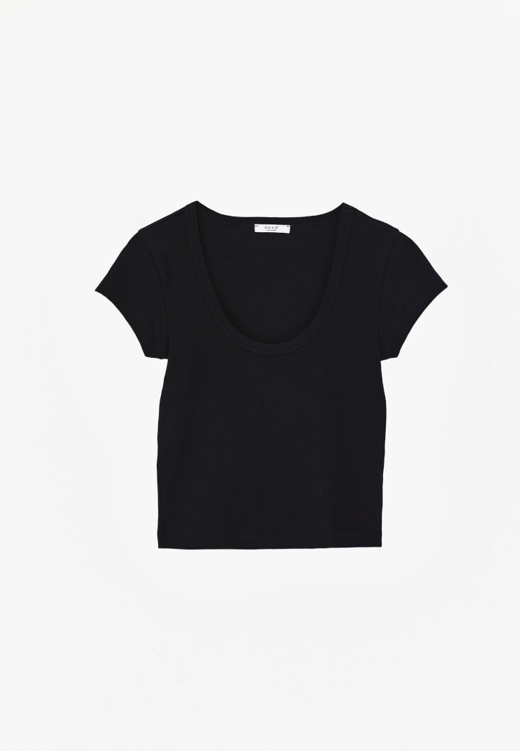 • Bayan Siyah Pamuklu U Yaka Tişört