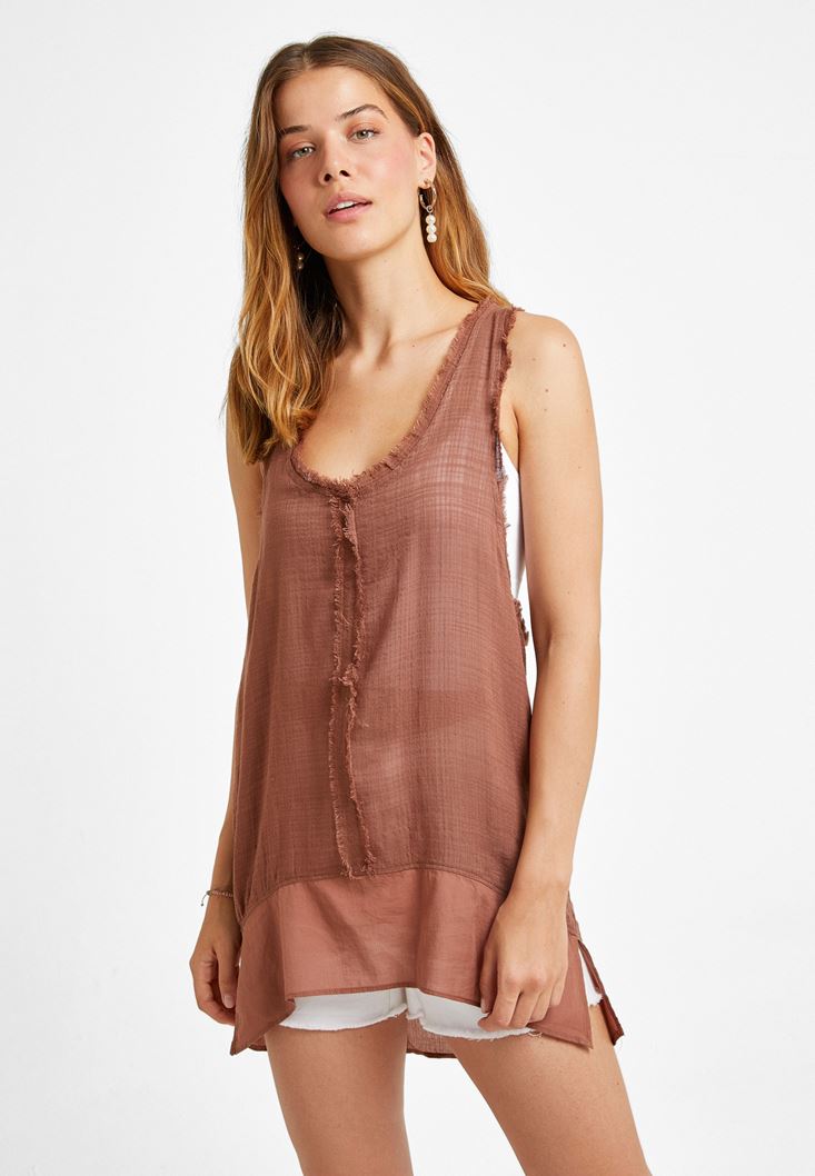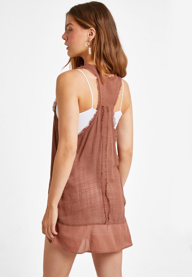 • Bayan Kahverengi Pamuklu Uzun Bluz