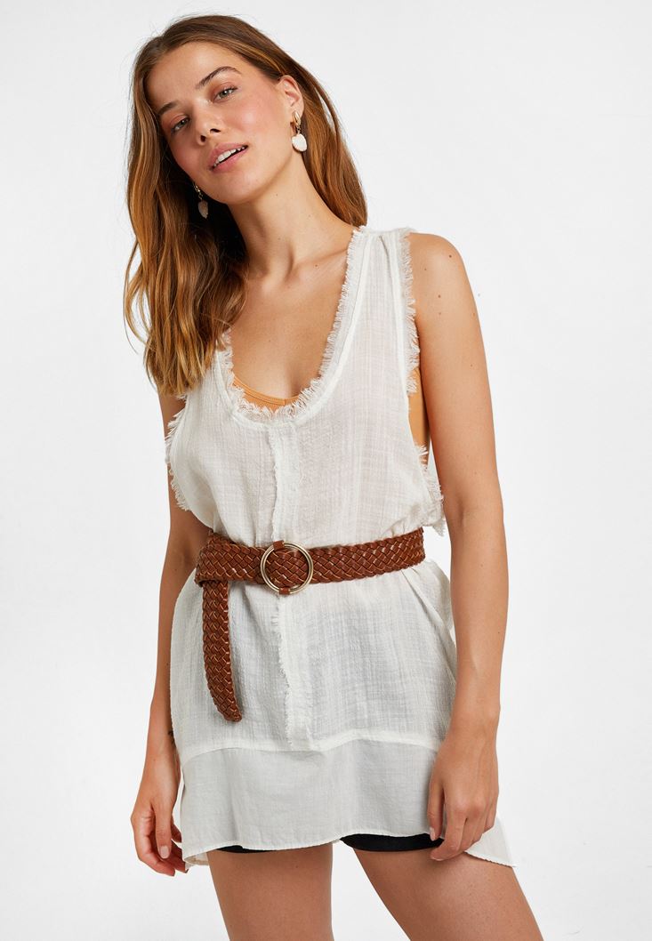 Pamuklu Uzun Bluz modeli, hafif yapısı sayesinde teninize yumuşak dokunuşlar yapan tasarımı ile sizleri Oxxo aracılığıyla buluşturuyor. kadın bluz modeli, kol ve yaka kısımlarında bulunan kısa püskül detaylarıyla hoş bir görüntü sunuyor. Kadın bluz modeli; önünde bulunan dikiş ile alt kısmında birleşen kumaş ayrıntısı sayesinde, hareket içeren bir tasarım olarak karşınıza çıkıyor. Kadın bluz modeli ile yapacağınız uçuş uçuş kombinler için kadın tayt modelleri ya da kadın şort modelleri tercih ederek, şıklıkta zirveye ulaşabilirsiniz. kadın bluz modeline çok yakışan bel kemeri kullanımı için kadın deri kemer modelleri içerisinden zevkinize uygun olanı seçerek; belinizin inceliğini ön plana çıkardığınız, zarif bir stil yaratabilirsiniz. Oxxo'nun özgün detaylar eşliğinde her sezon yenilikçi tasarımlar sunduğu koleksiyonlara oxxo.com.tr'den hemen ulaşabilirsiniz.
