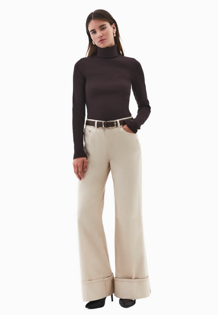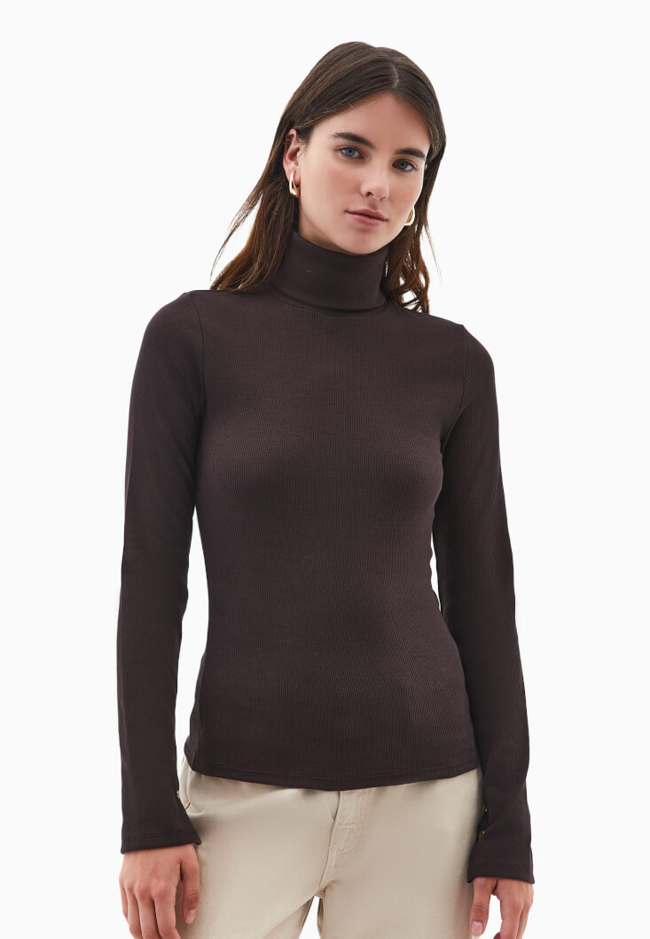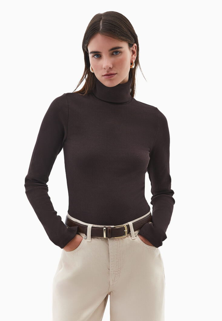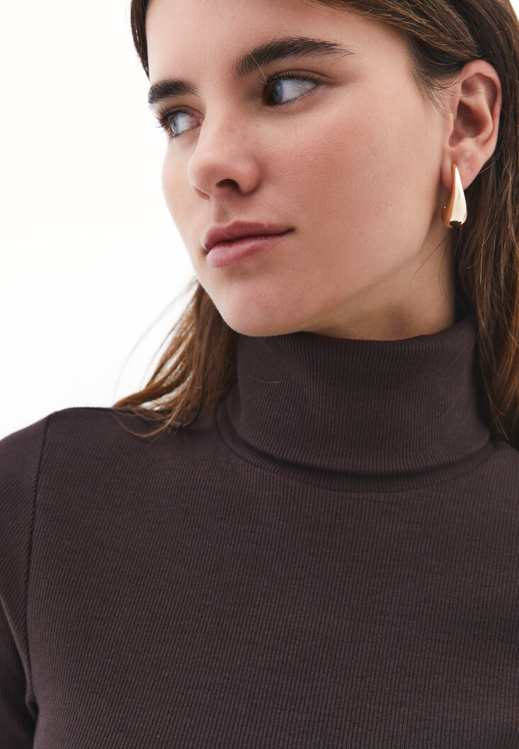 Kahverengi Pamuklu Uzun Kollu Roll Neck
