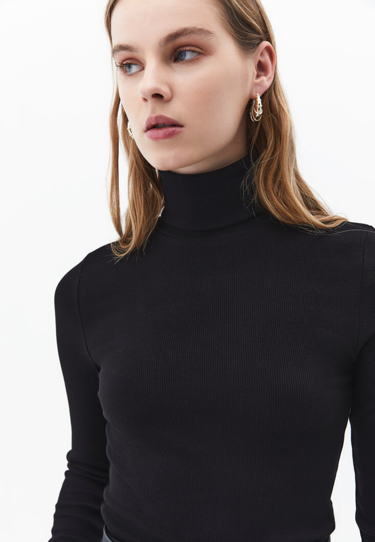 Siyah Pamuklu Uzun Kollu Roll Neck