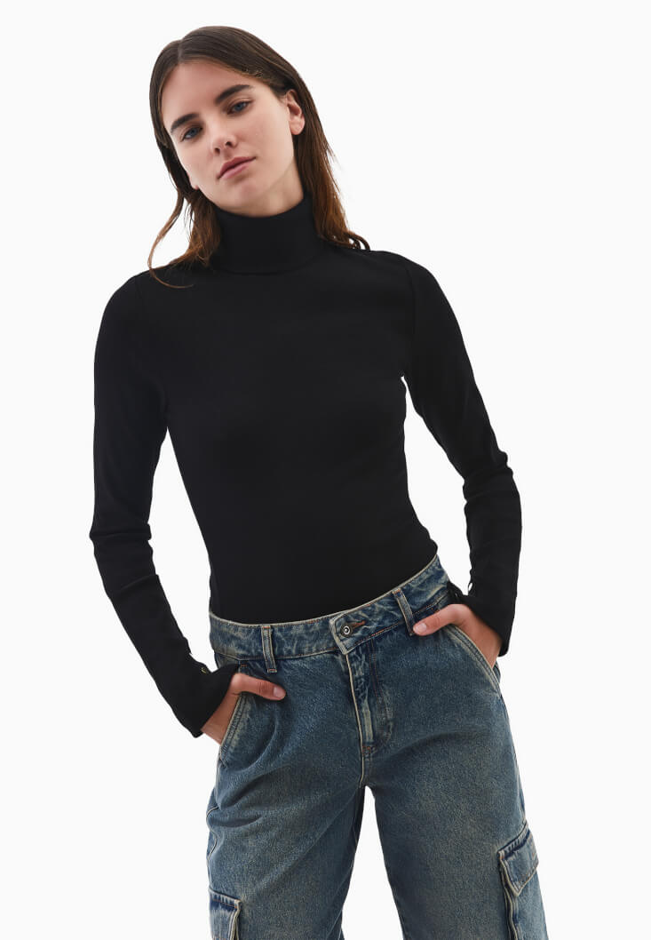 • Bayan Siyah Pamuklu Uzun Kollu Roll Neck