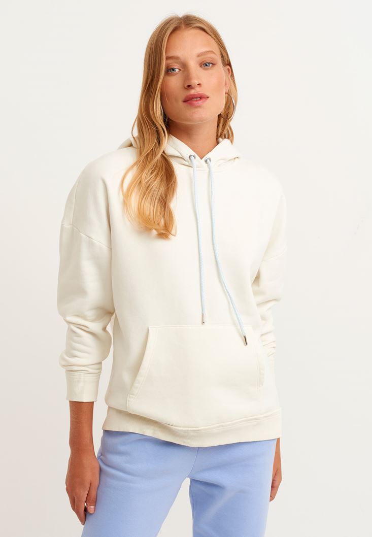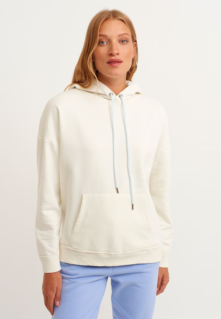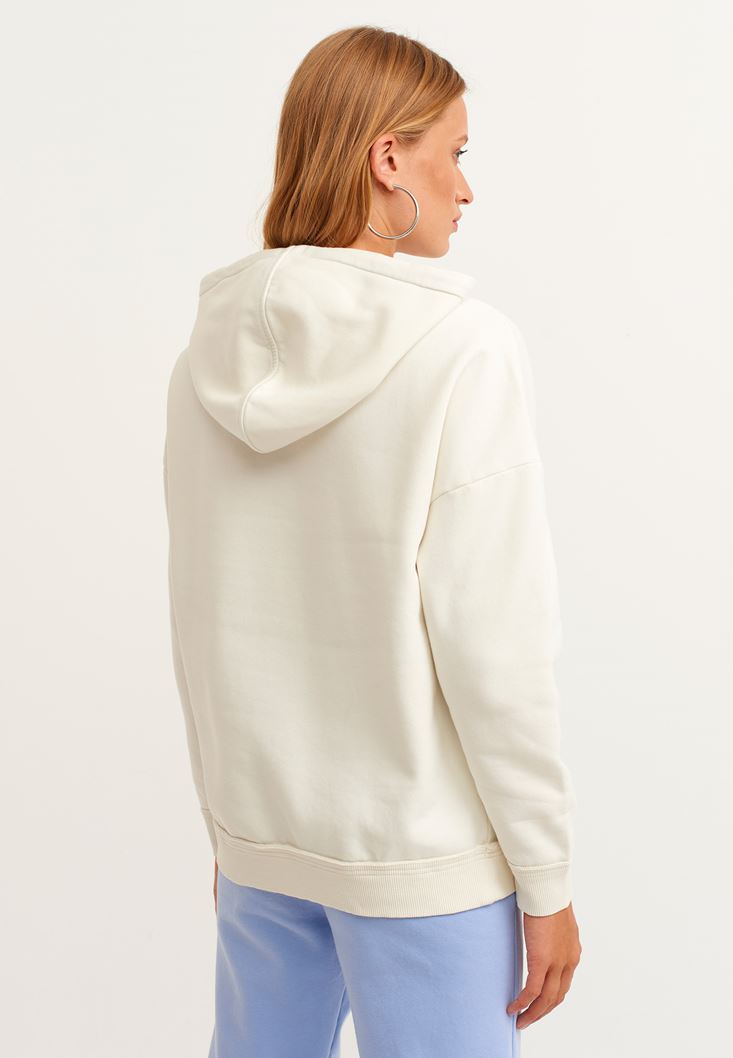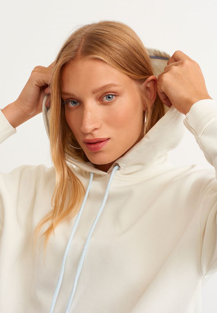 • Bayan Krem Pamuklu Uzun Kollu Sweatshirt