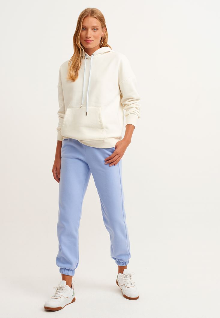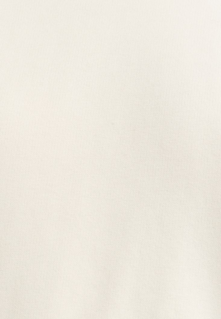Krem Pamuklu Uzun Kollu Sweatshirt