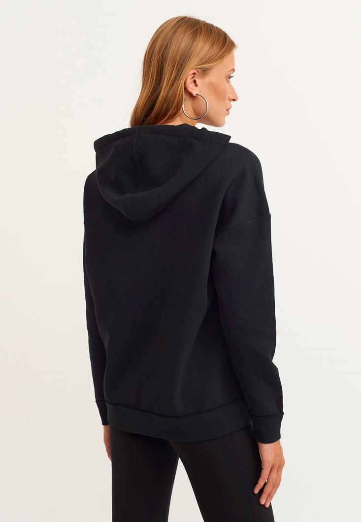 Siyah Pamuklu Uzun Kollu Sweatshirt
