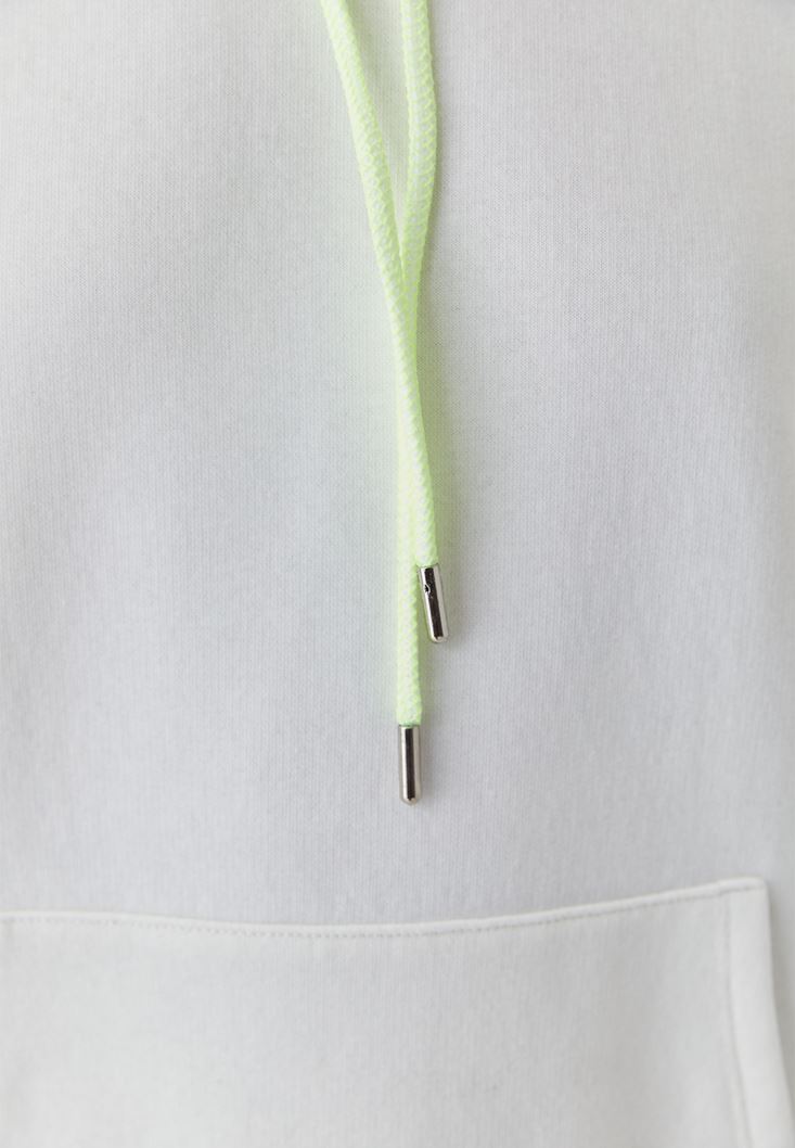 Pamuk karışımlı özel sweat doku, bedenden uzak oversize fit, uzun kollu, ön kısmı cepli, bağcık detaylı kapüşon, kol ucu ve beli jakarlı.