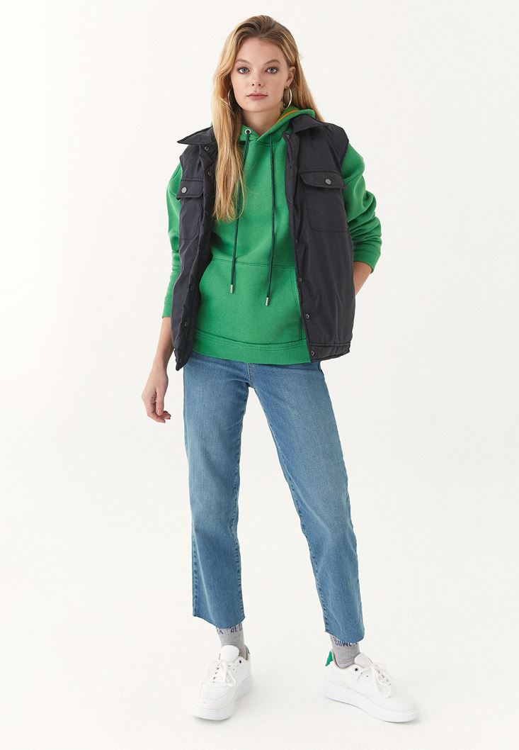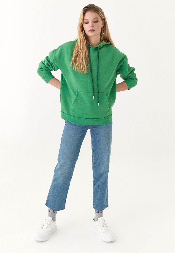 • Bayan Yeşil Pamuklu Uzun Kollu Sweatshirt