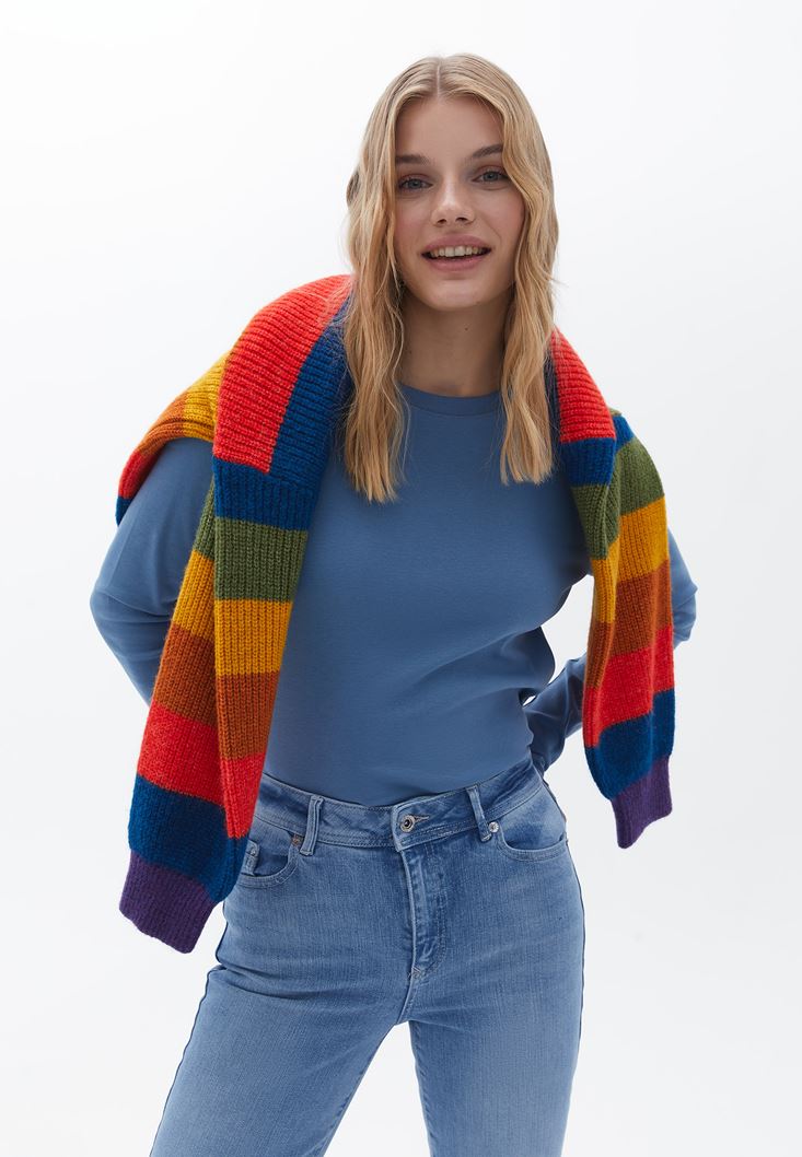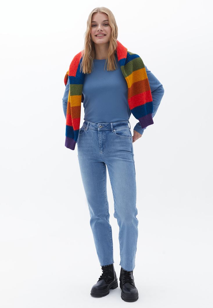• Bayan Mavi Pamuklu Uzun Kollu Tişört