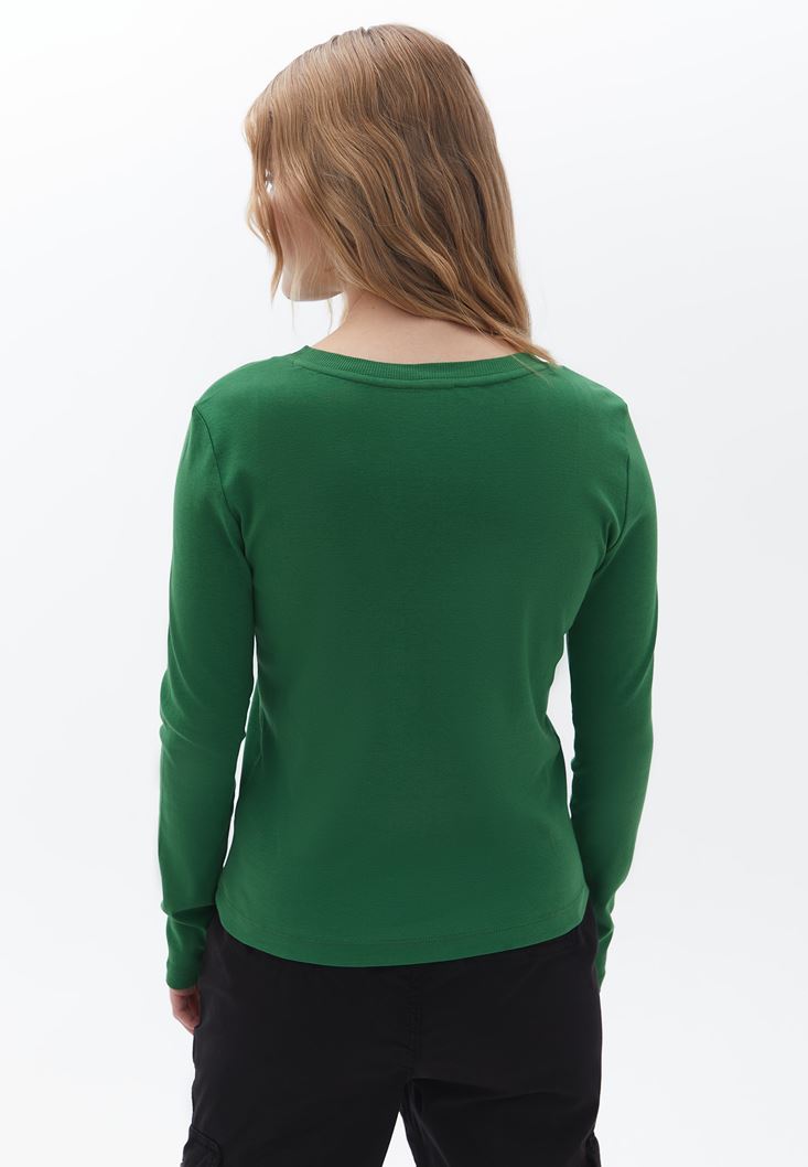 • Bayan Yeşil Pamuklu Uzun Kollu Tişört