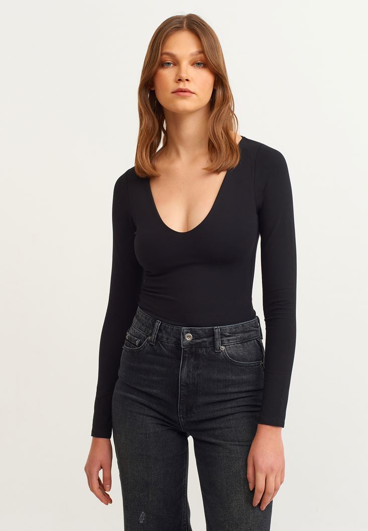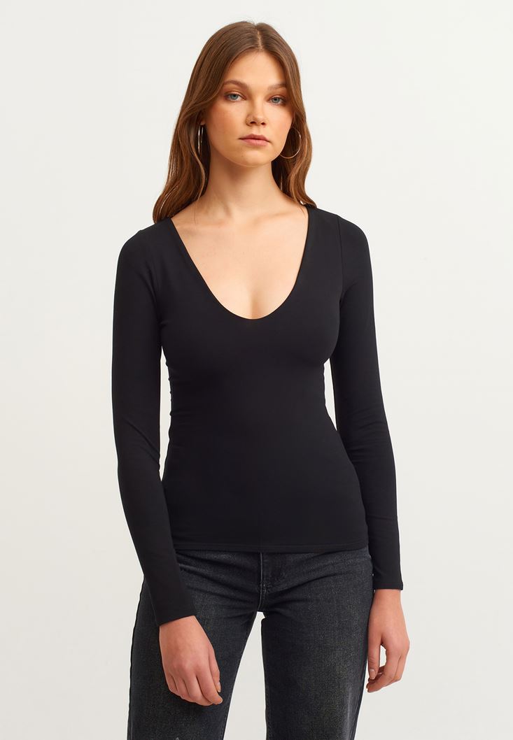 Fit: Bodycon / Yaka: V-Neck / Kol Tipi: Long Sleeve