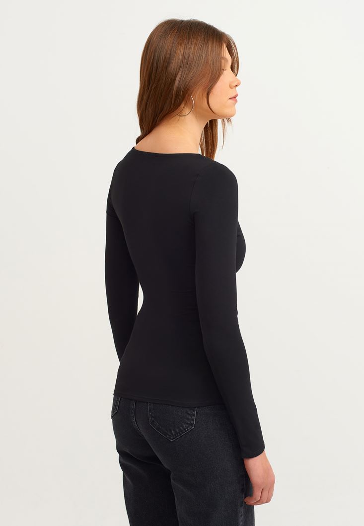 • Bayan Siyah Pamuklu Uzun Kollu Tişört