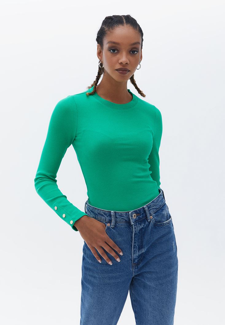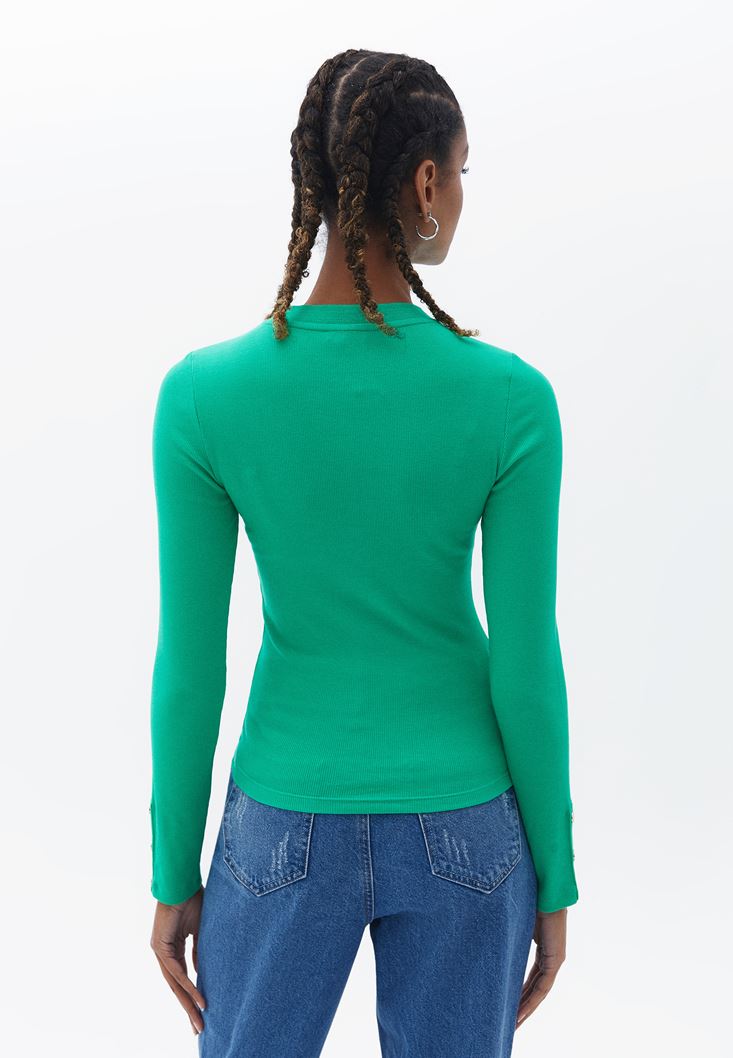 • Bayan Yeşil Pamuklu Uzun Kollu Tişört