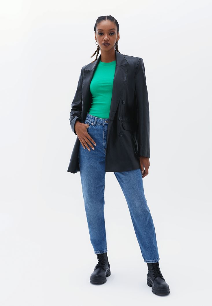 Yüksek pamuk karışımlı özel doku, sıfır yaka, bedeni saran esnek fit, uzun kollu, kol ucu aksesuar detaylı.