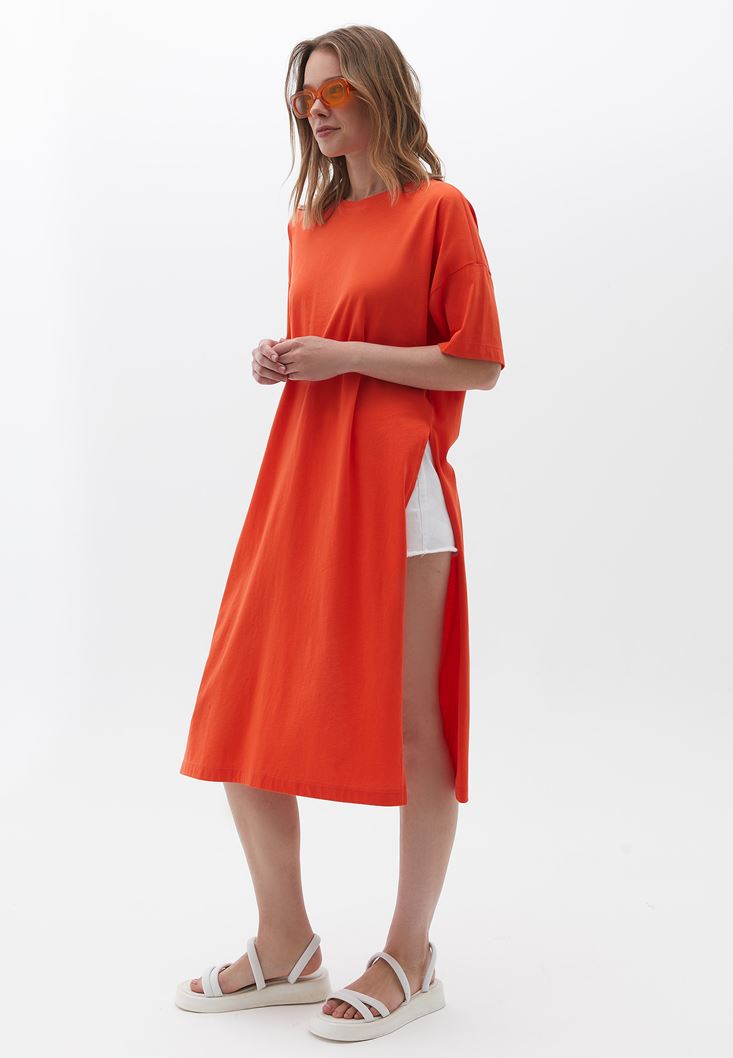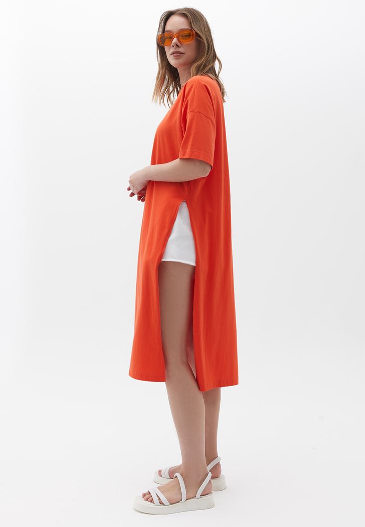 • Bayan Turuncu Pamuklu Uzun Tişört