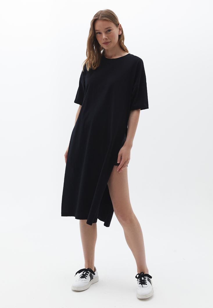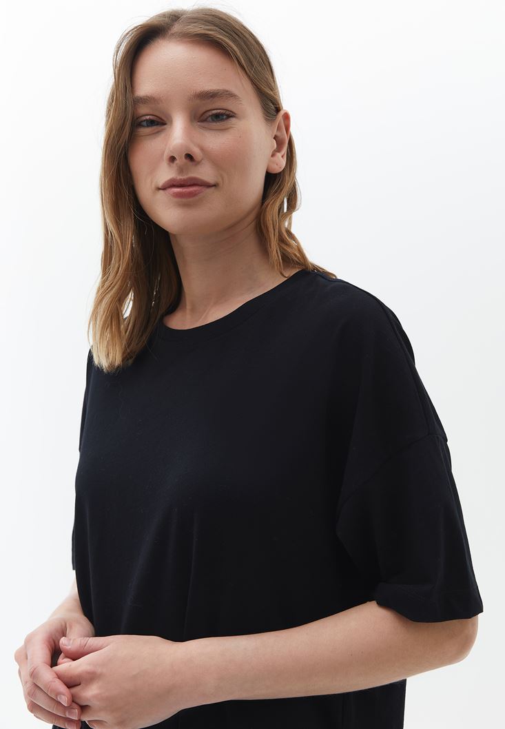 Siyah Pamuklu Uzun Tişört