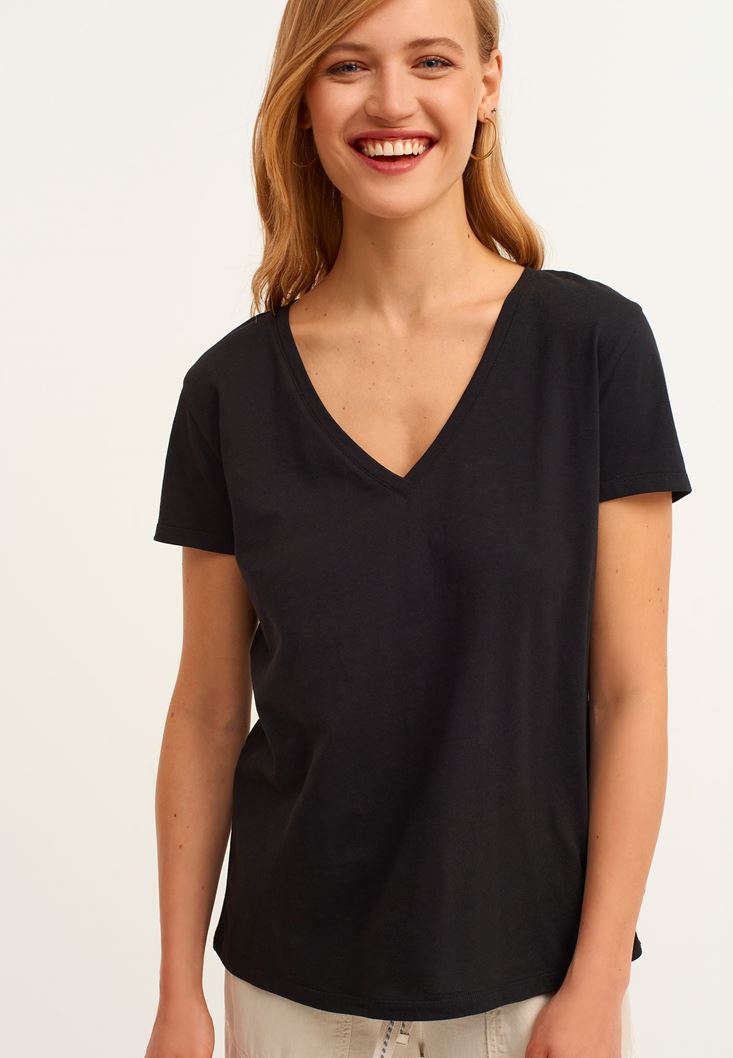 • Bayan Siyah Pamuklu V-Neck Tişört